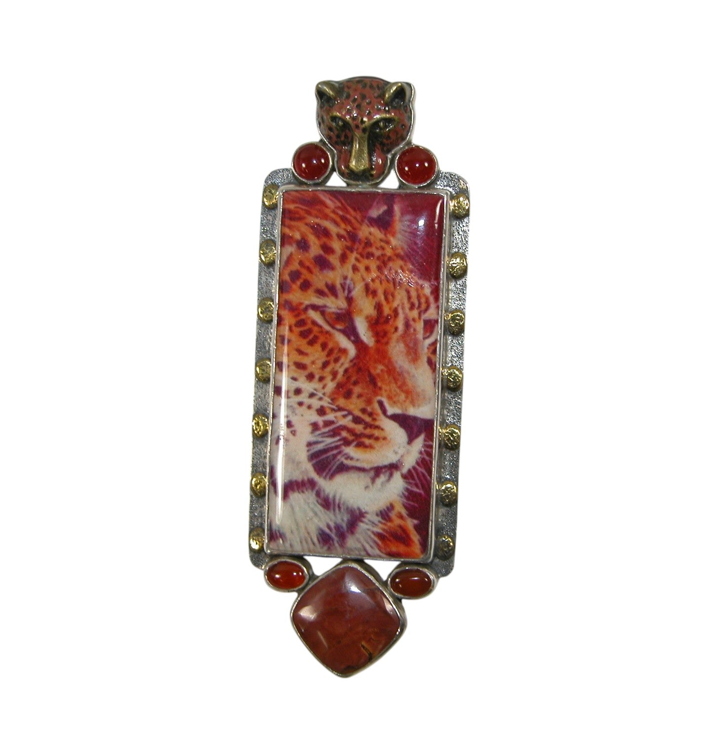 30152 Carnelian, Cherry Creek Jasper, Hand Made Tile, Hand Enameling Sterling Silver Pin Pendant