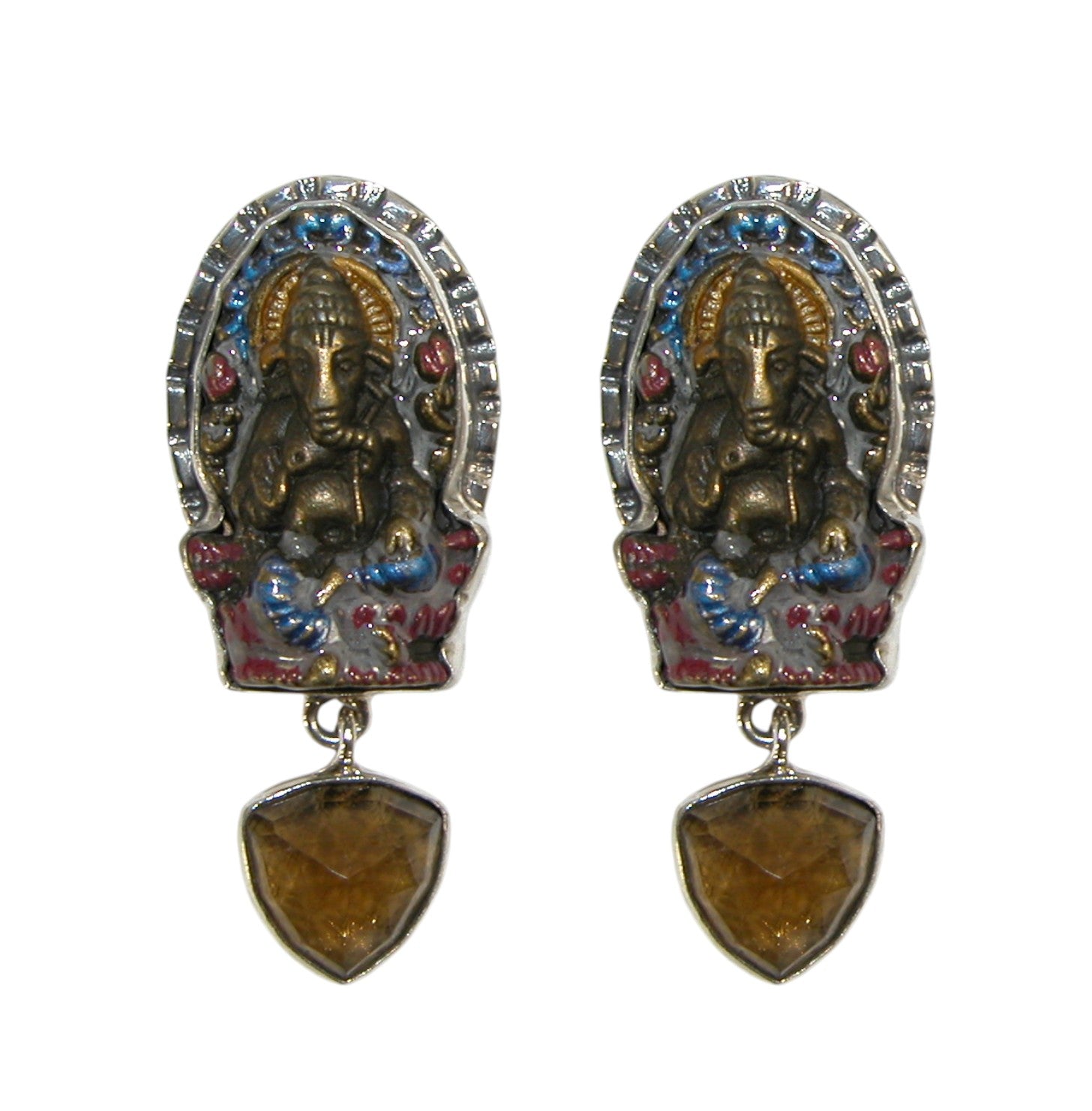 33445B Ganesha Cognac Quartz Sterling Silver Earrings
