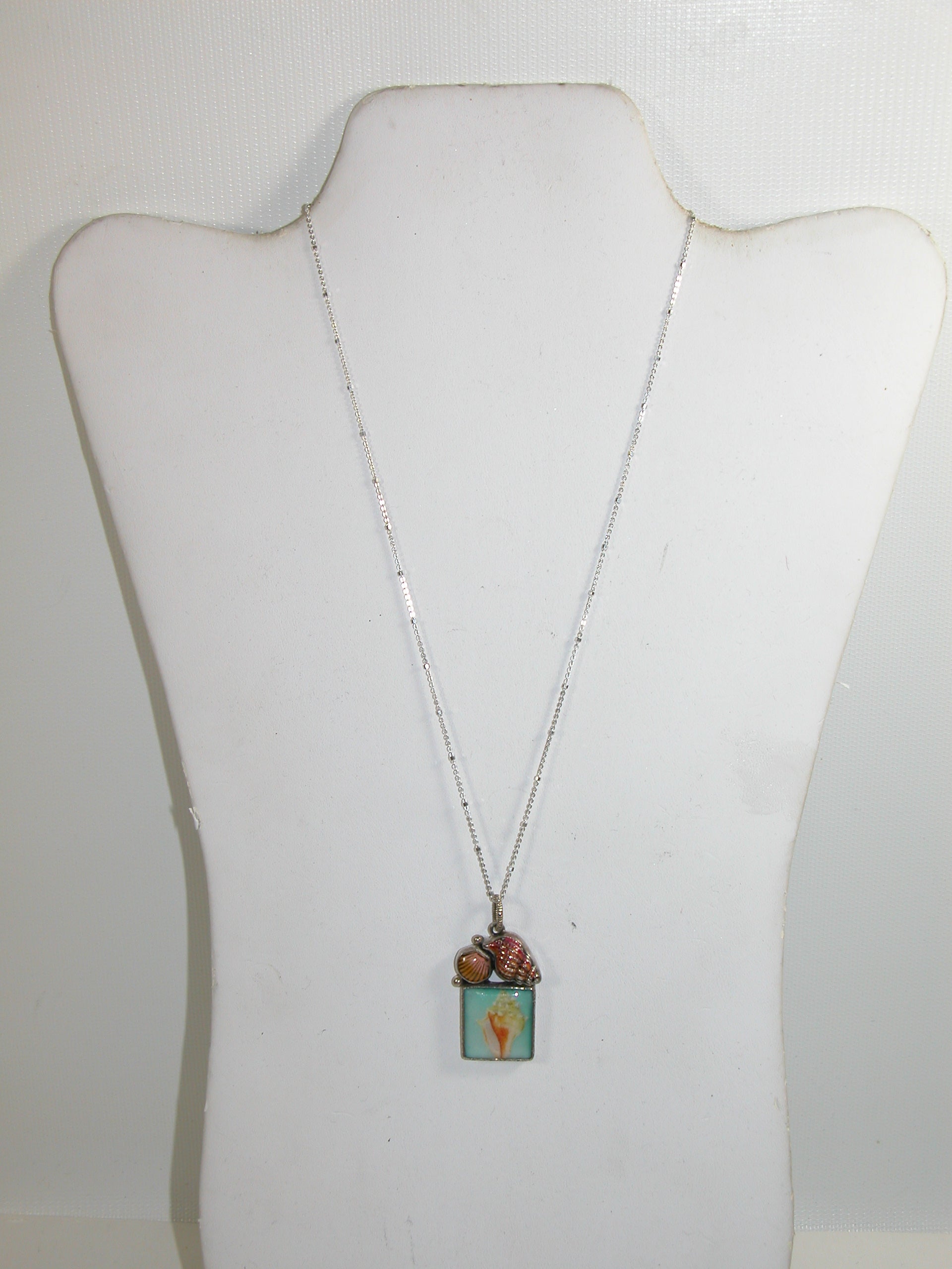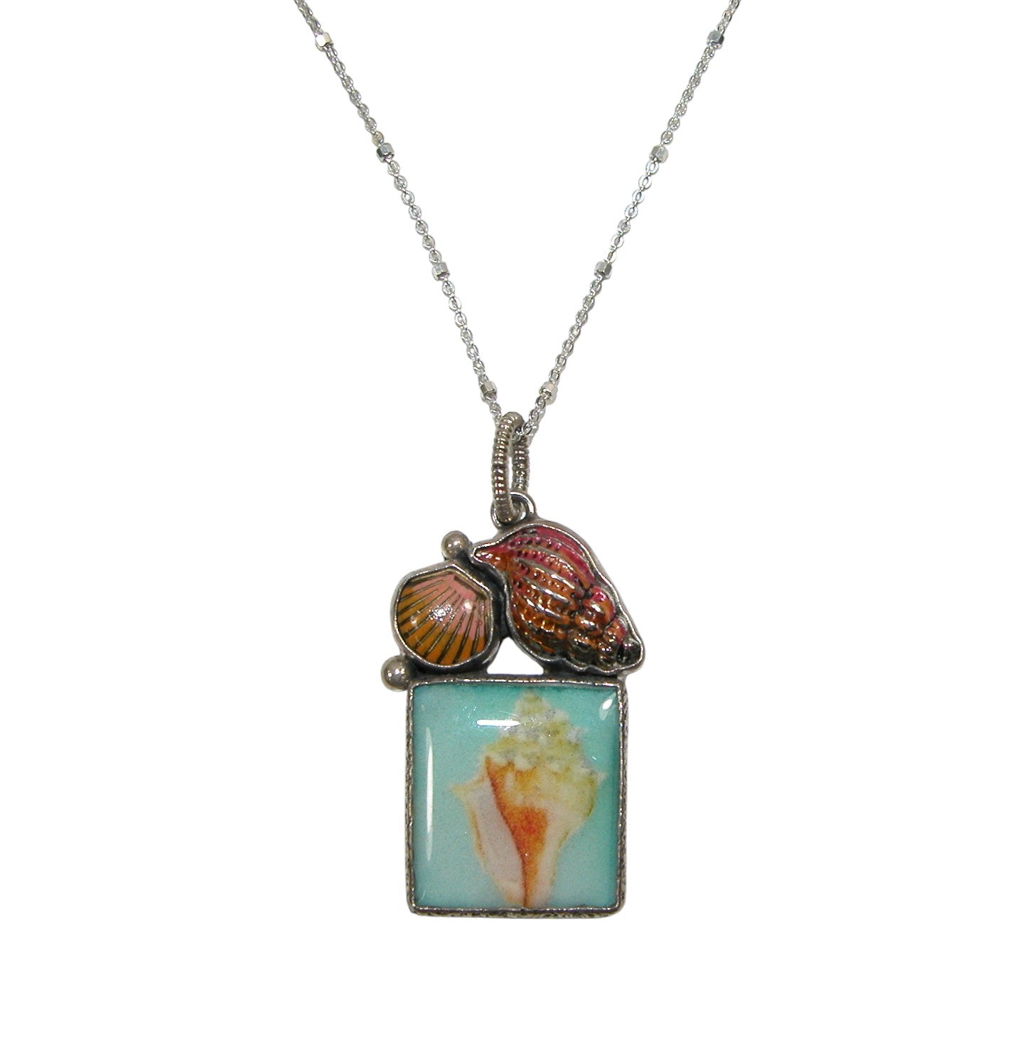 30724 Seashell Hand Enameling Hand Made Tile Sterling Silver Necklace
