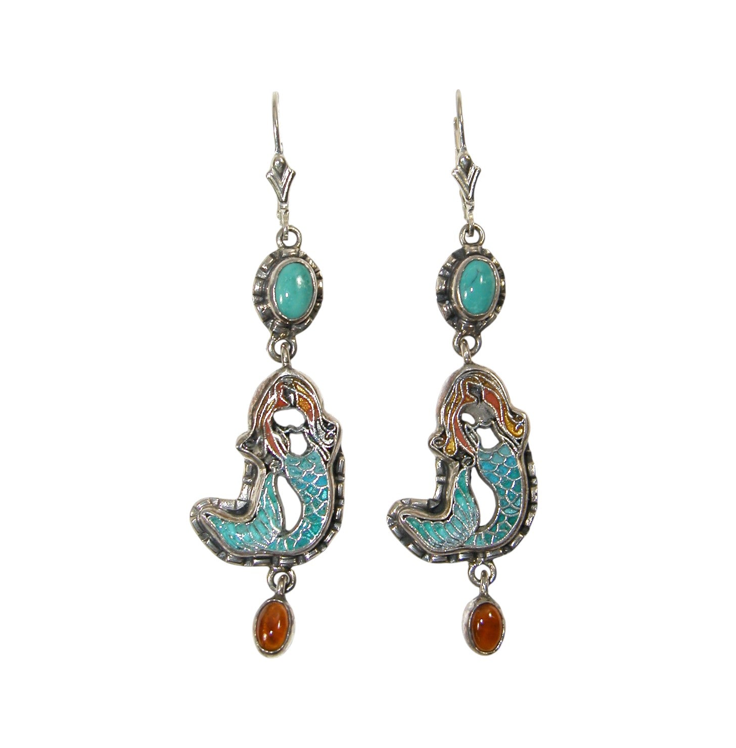31248L Hand Painted Enamel Mermaid Turquoise Sterling Silver Earring