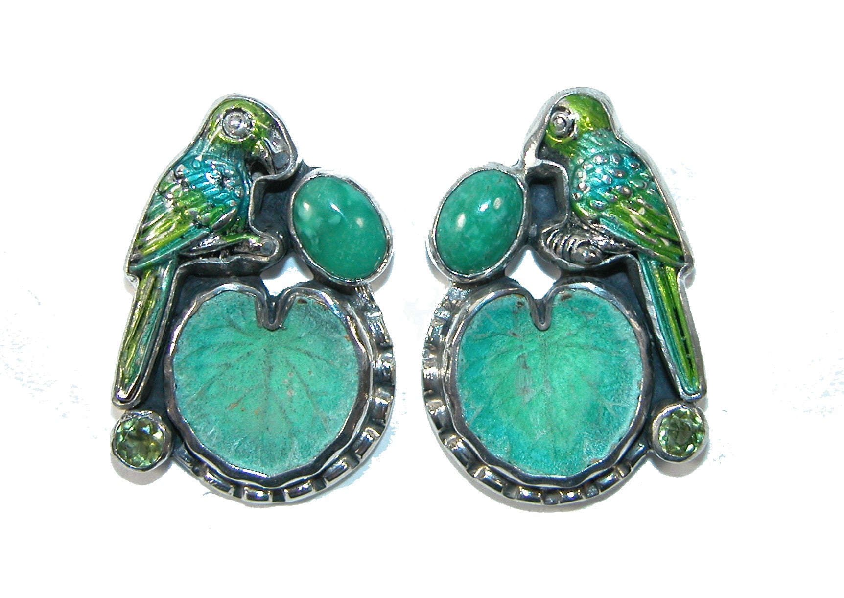 31351 Handmade Tile, Enamel, Turquoise, Sterling Silver Earrings