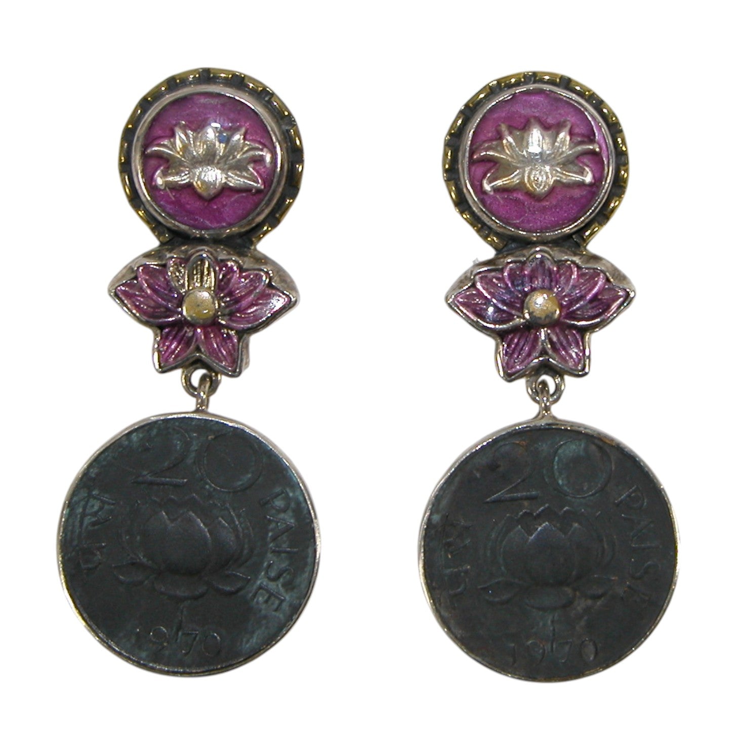 31542A Lotus Hand Enameling Coin Sterling Silver Earrings