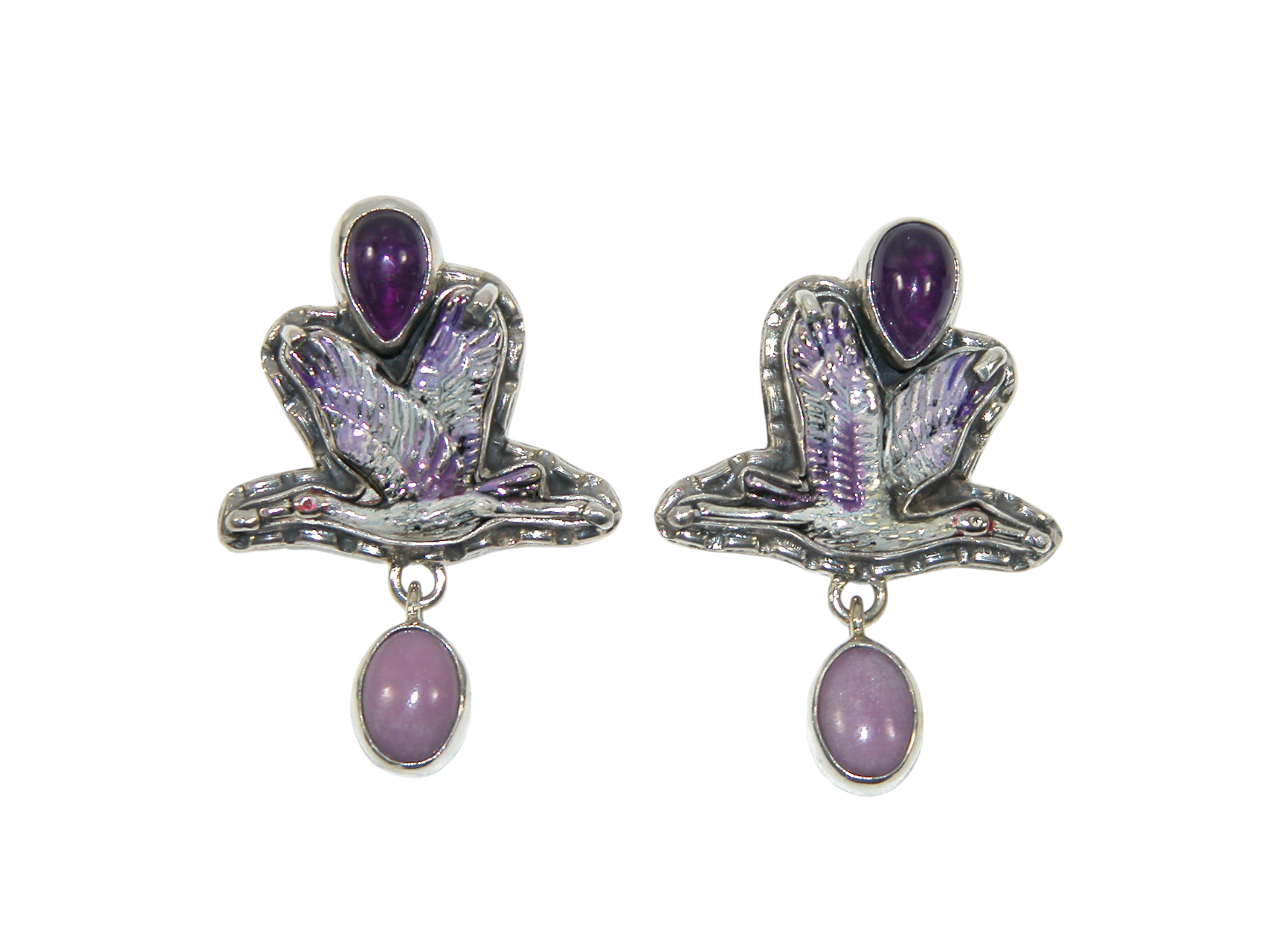 31825B Amethyst Enameled Crane Sterling Silver Earring