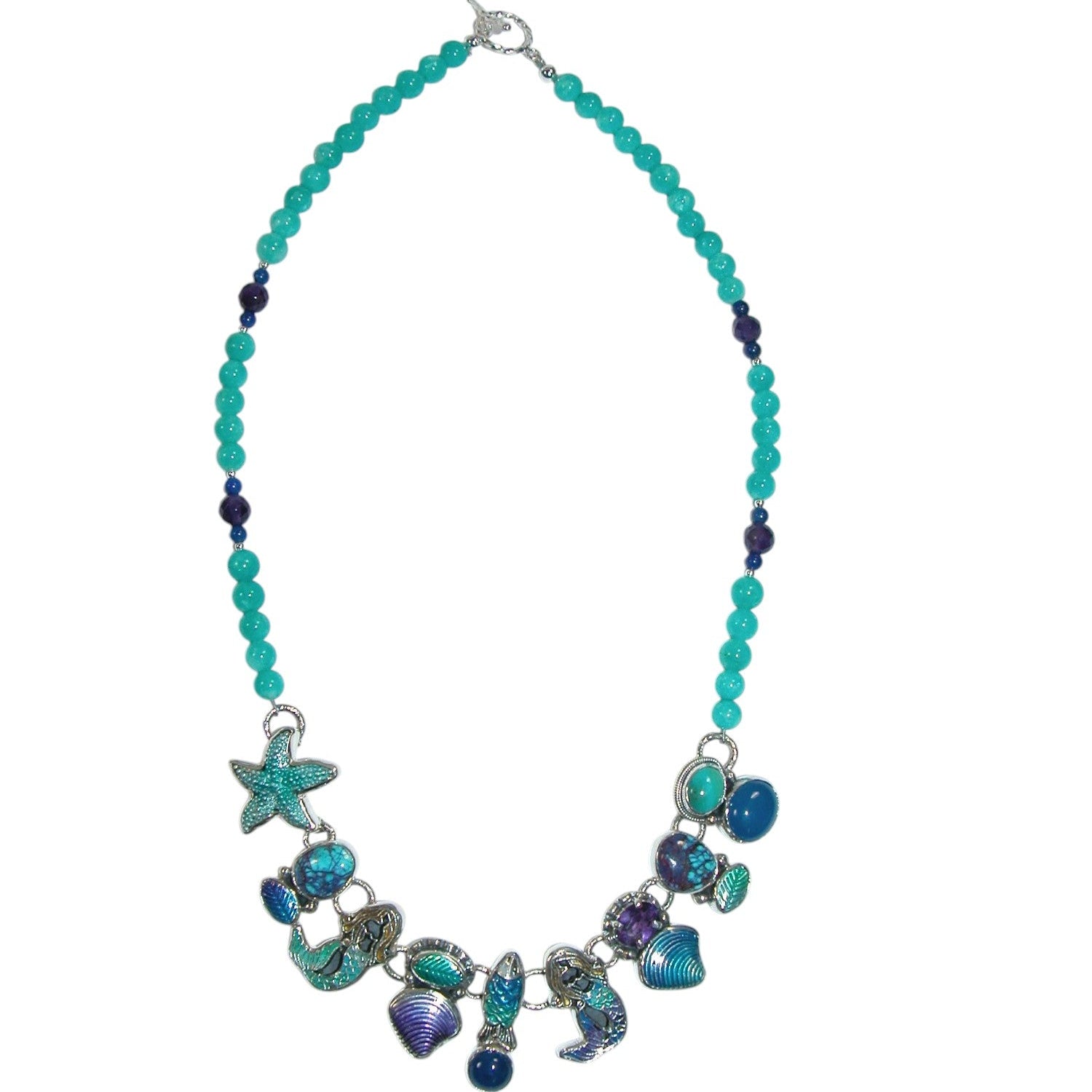 32122 Turquoise Hand Enamel Sea Life Beaded Sterling Silver Necklace
