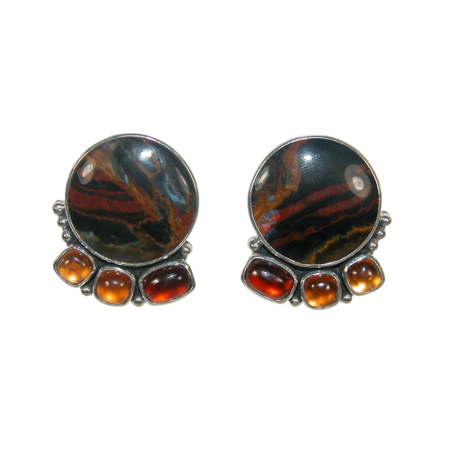 32715 Natural Agate, Hessonite Sterling Silver Earrings