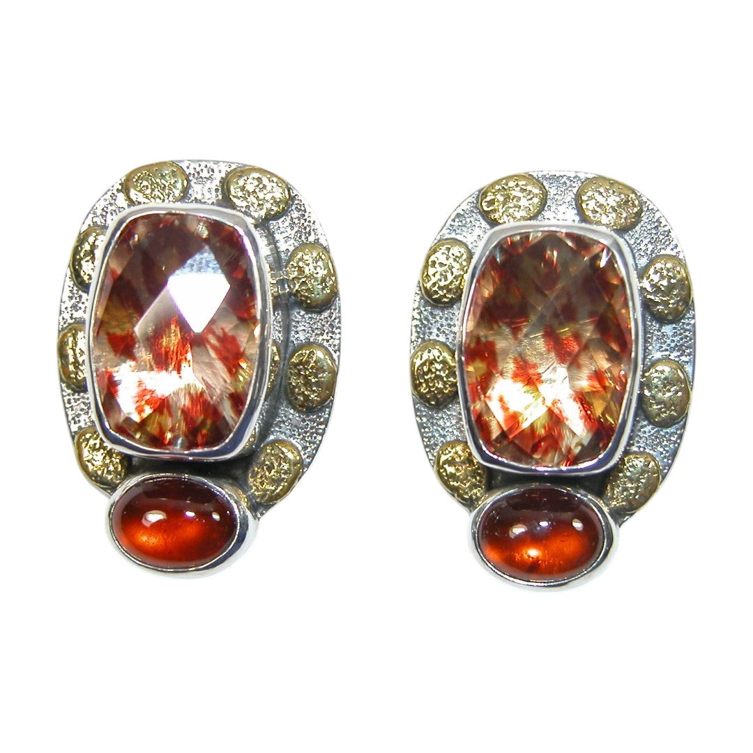 Enameled Quartz, Hessonite Sterling Silver Earrings