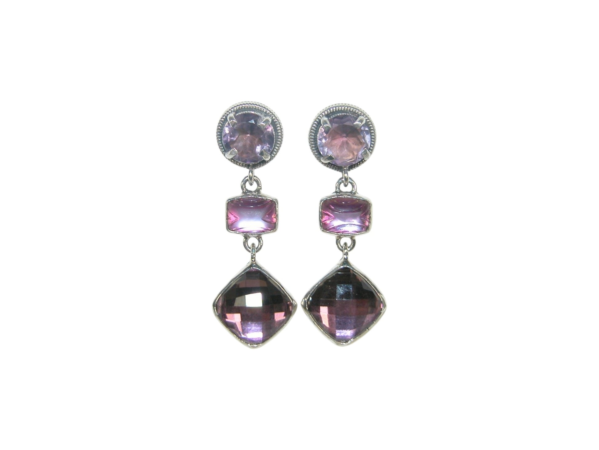 32696 Three Stone, Celestial Quartz, Amethyst Sterling Silver Earrings