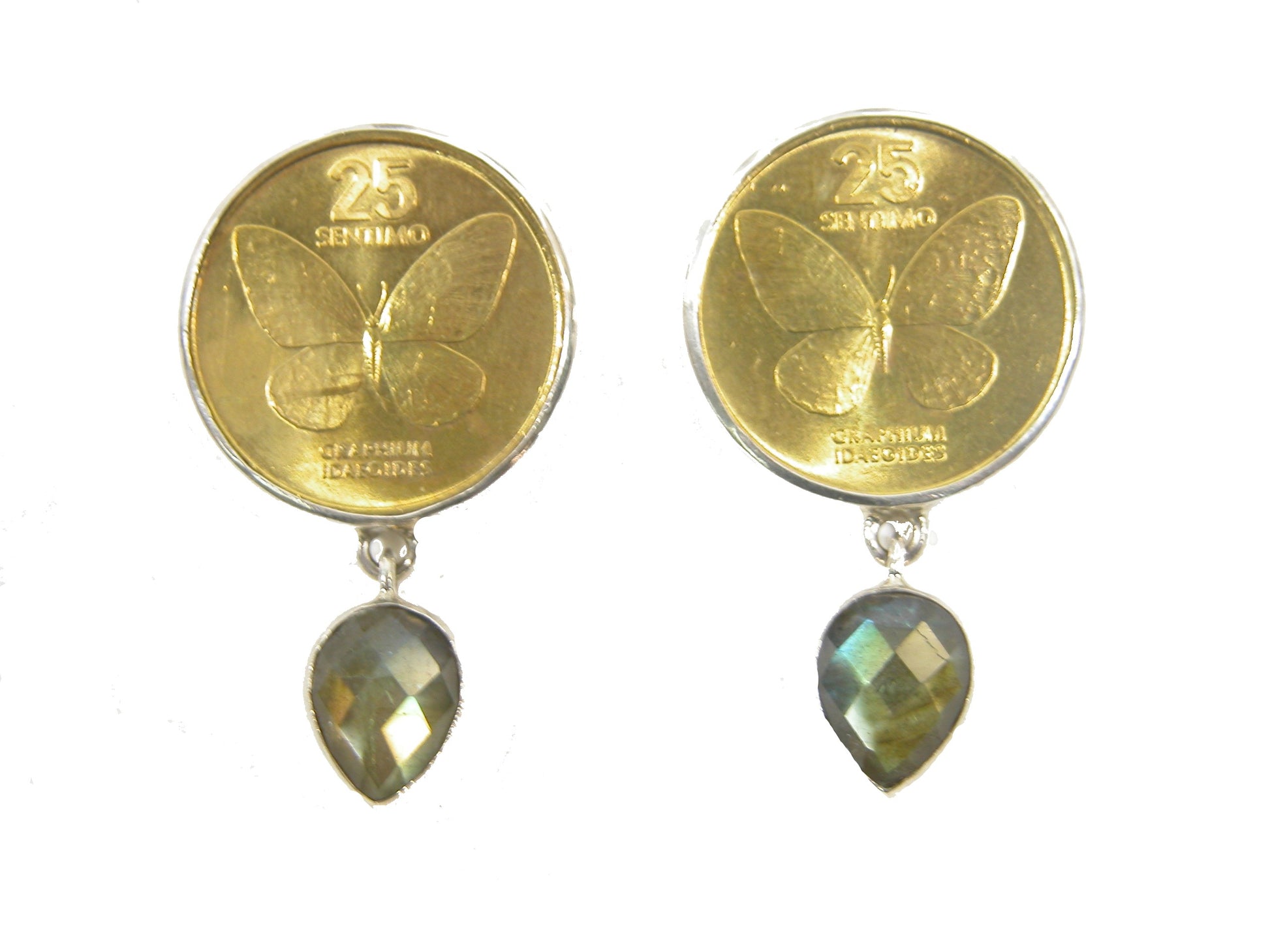 31384 Butterfly Coin, Labradorite Sterling Silver Earrings