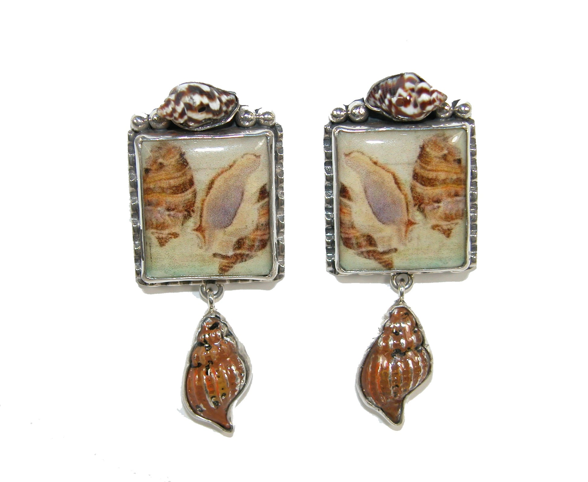 32546 Hand Made Tile, Shell Sterling Silver Earrings