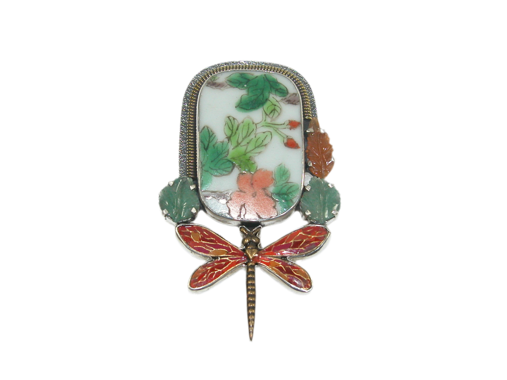 32959 Antique Mosaic, Hand Carved Aventurine, Sterling Silver Pin and Pendant