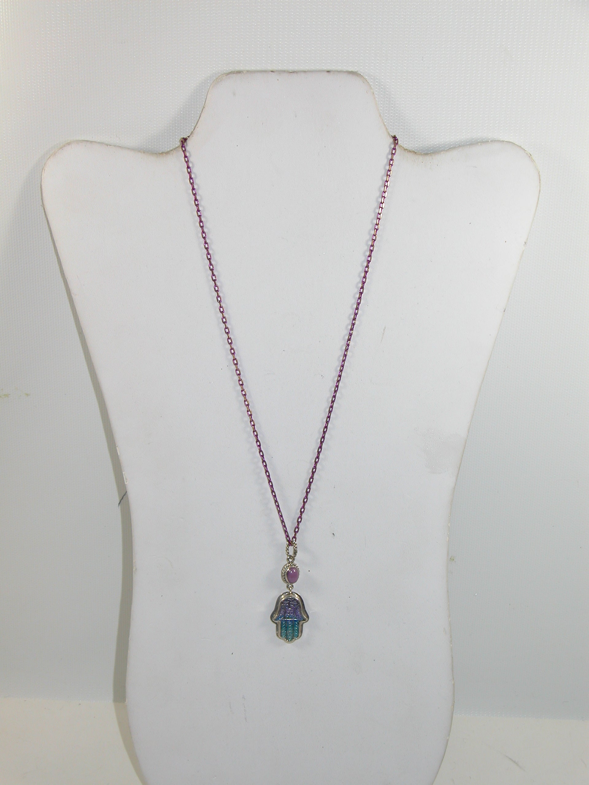 32982 Hand Enameling Hamsa, Phosphosiderite Sterling Silver Necklace
