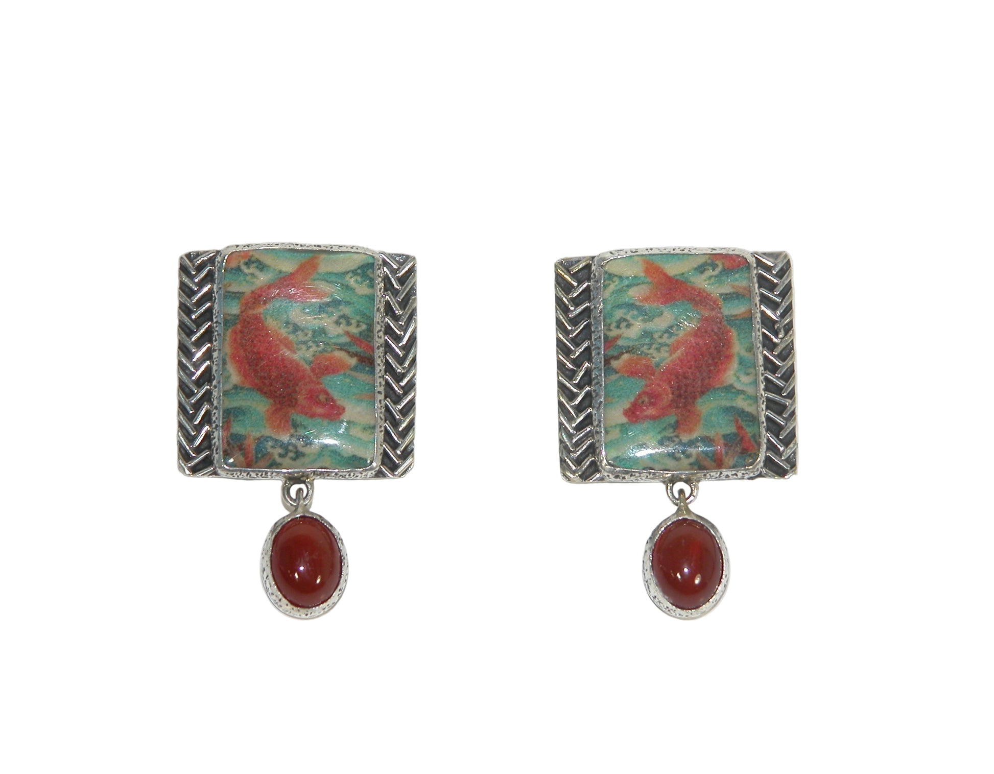 33017 Koi Fish Handmade Tile, Carnelian, Sterling Silver Earrings