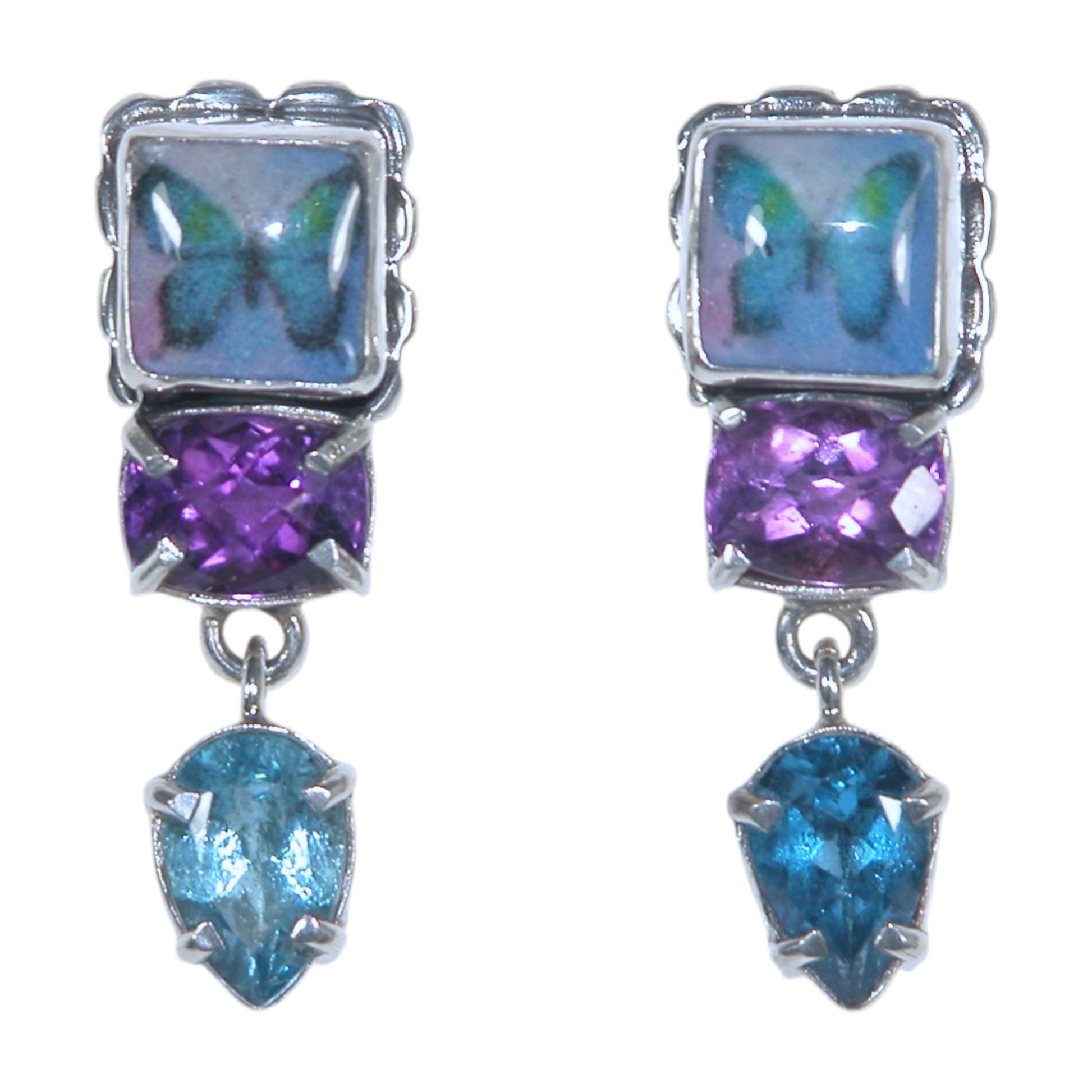 33037 Amethyst Butterfly Tile Sterling Silver Dangle Earrings