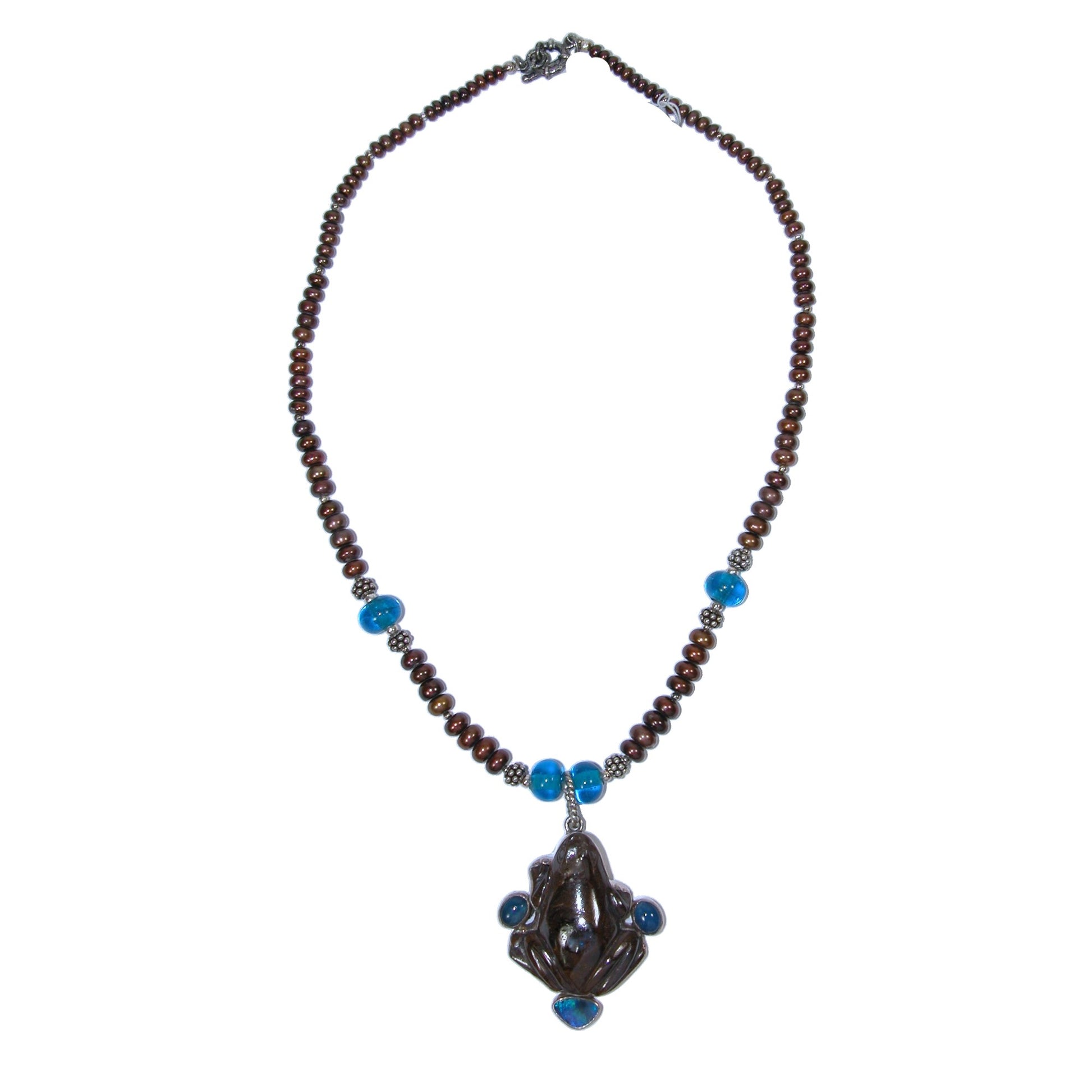 17994 Freshwater Pearl, Boulder Opal, Amethyst Sterling Silver Necklace