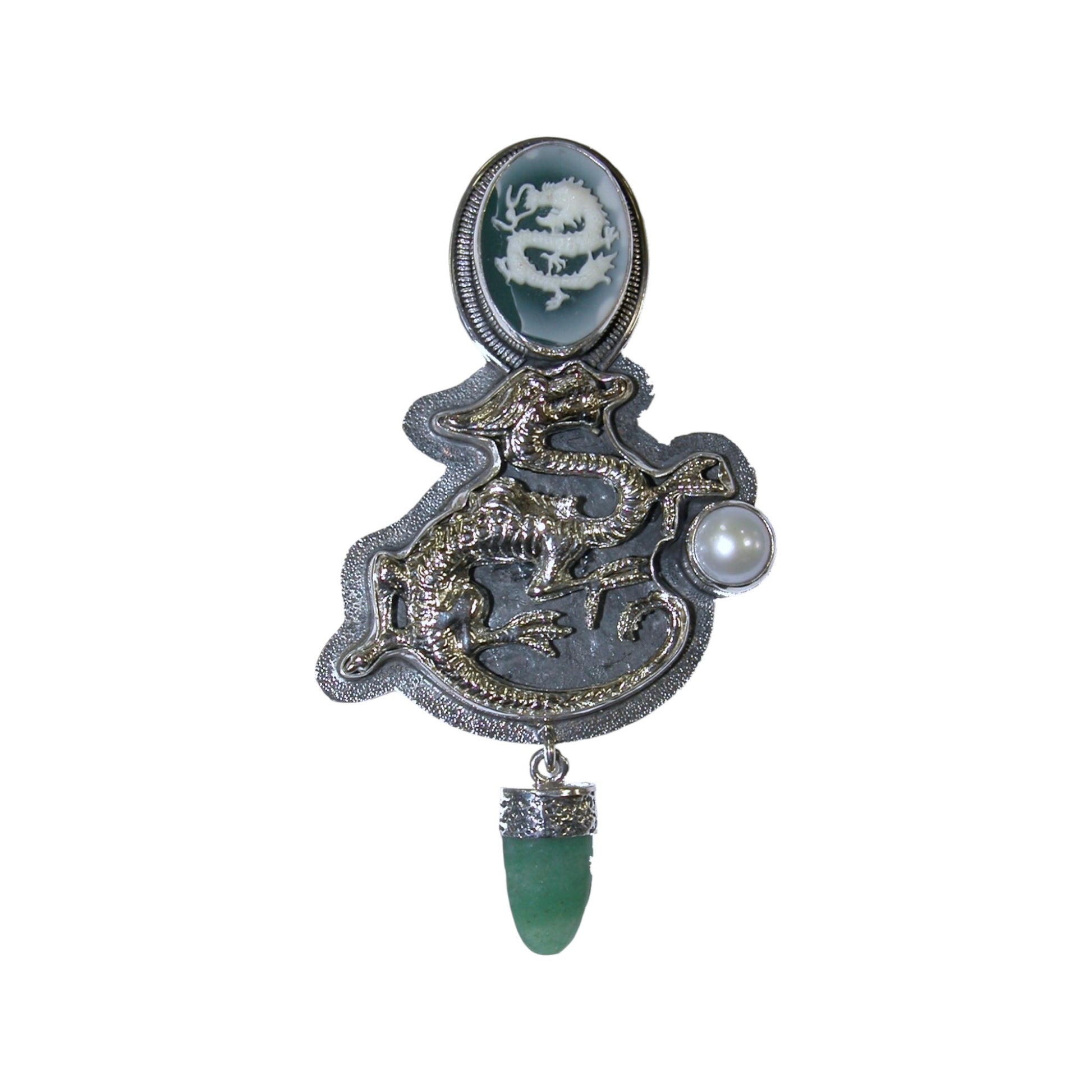 20189 Freshwater Pearl, Aventurine Sterling Silver Pin and Pendant