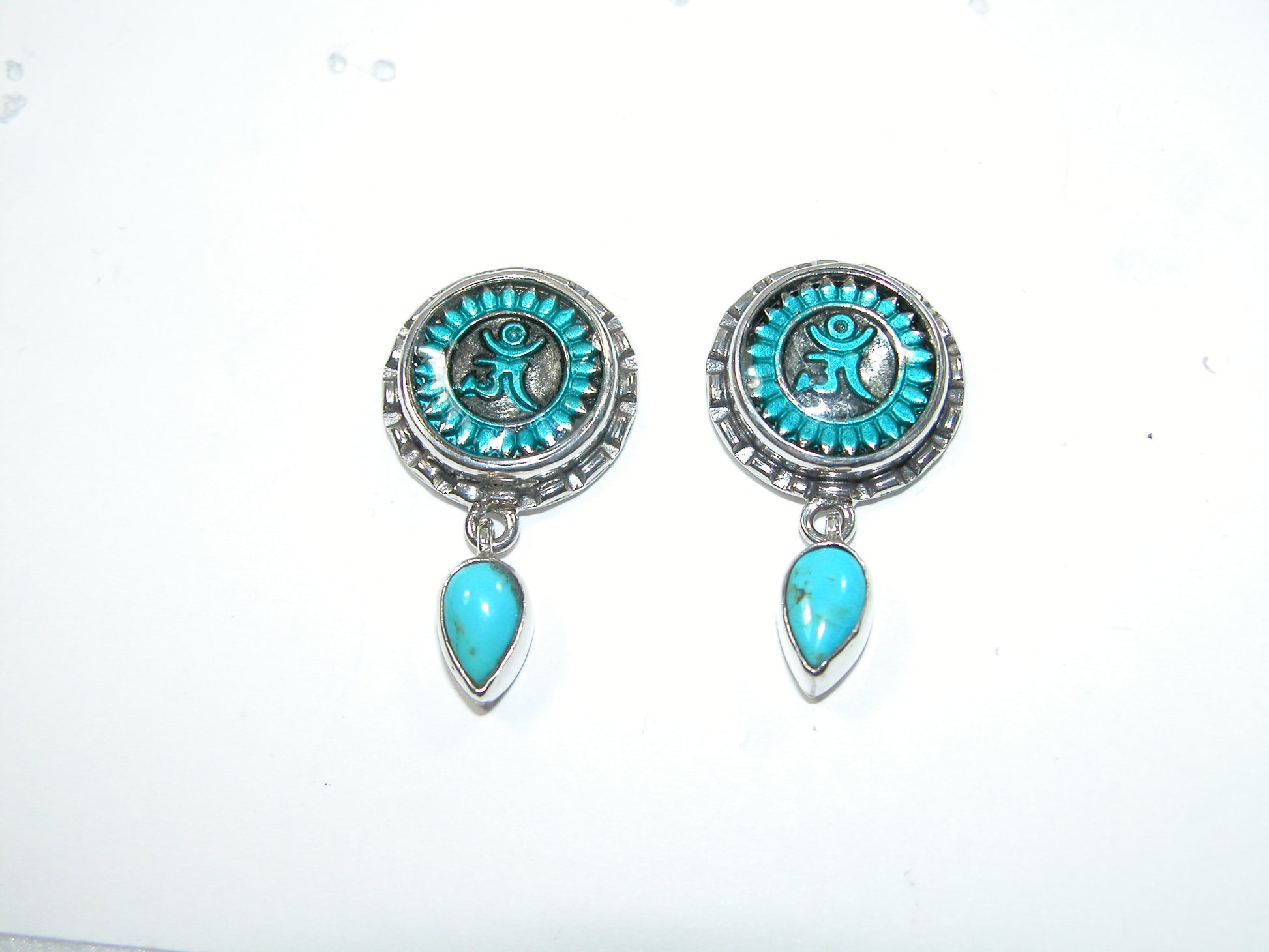 33238 Turquoise, Hand Enamel Ohm, Sterling Silver Earrings