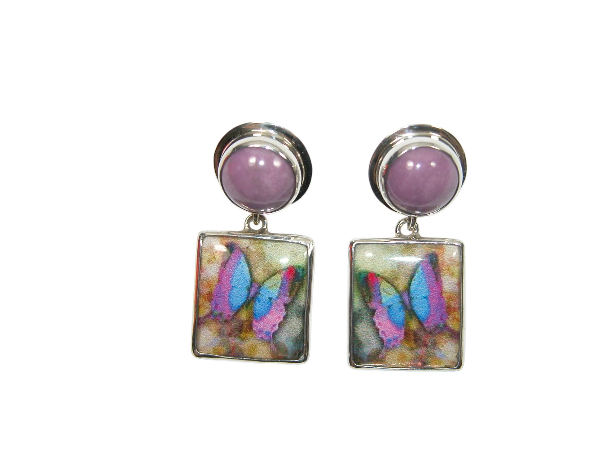 34025 Hand Made Tile, Phosphosiderite Sterling Silver Earrings