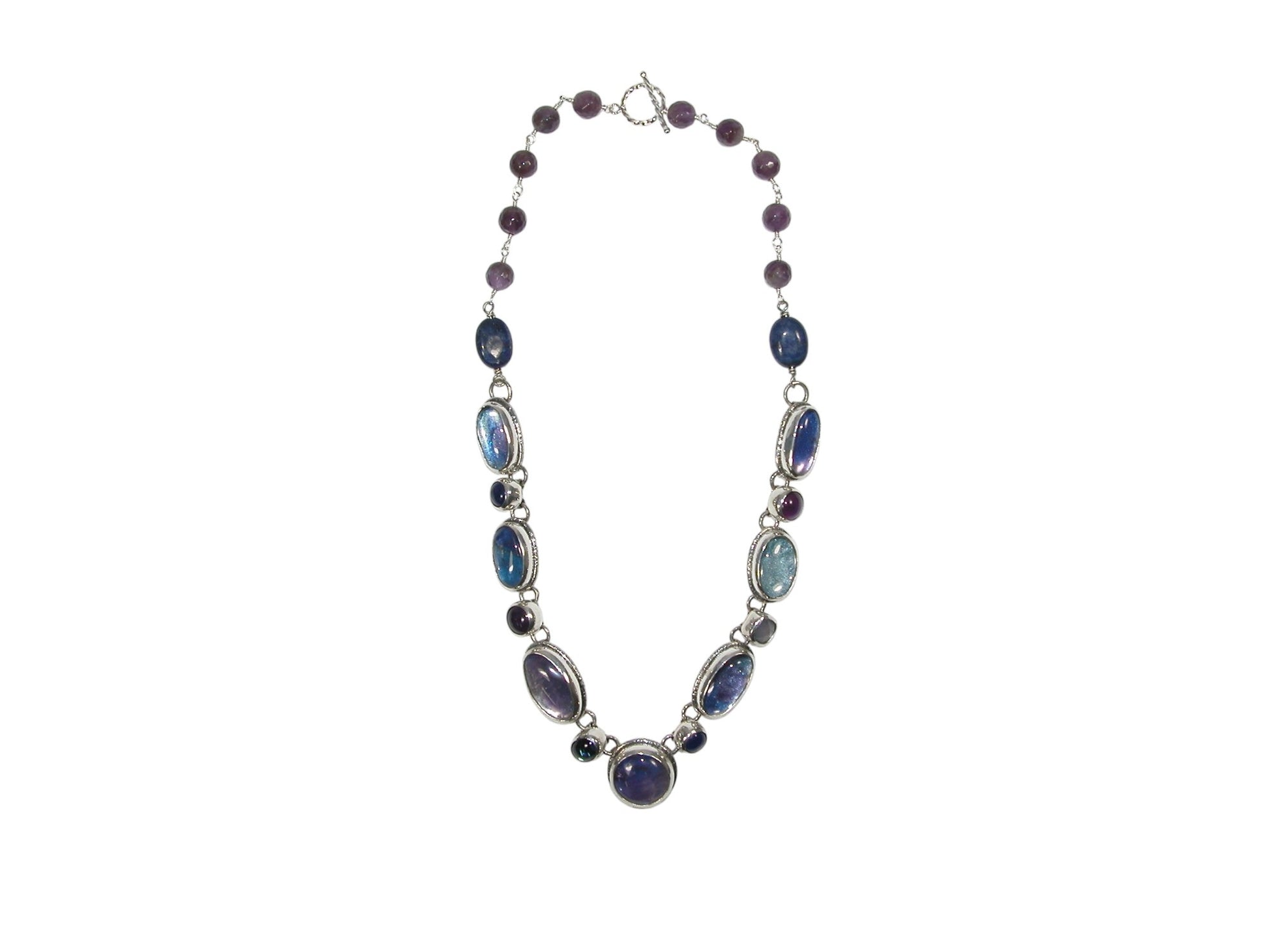 Amethyst, Lapis, Chalcedony, Quartz, Sterling Silver Necklace