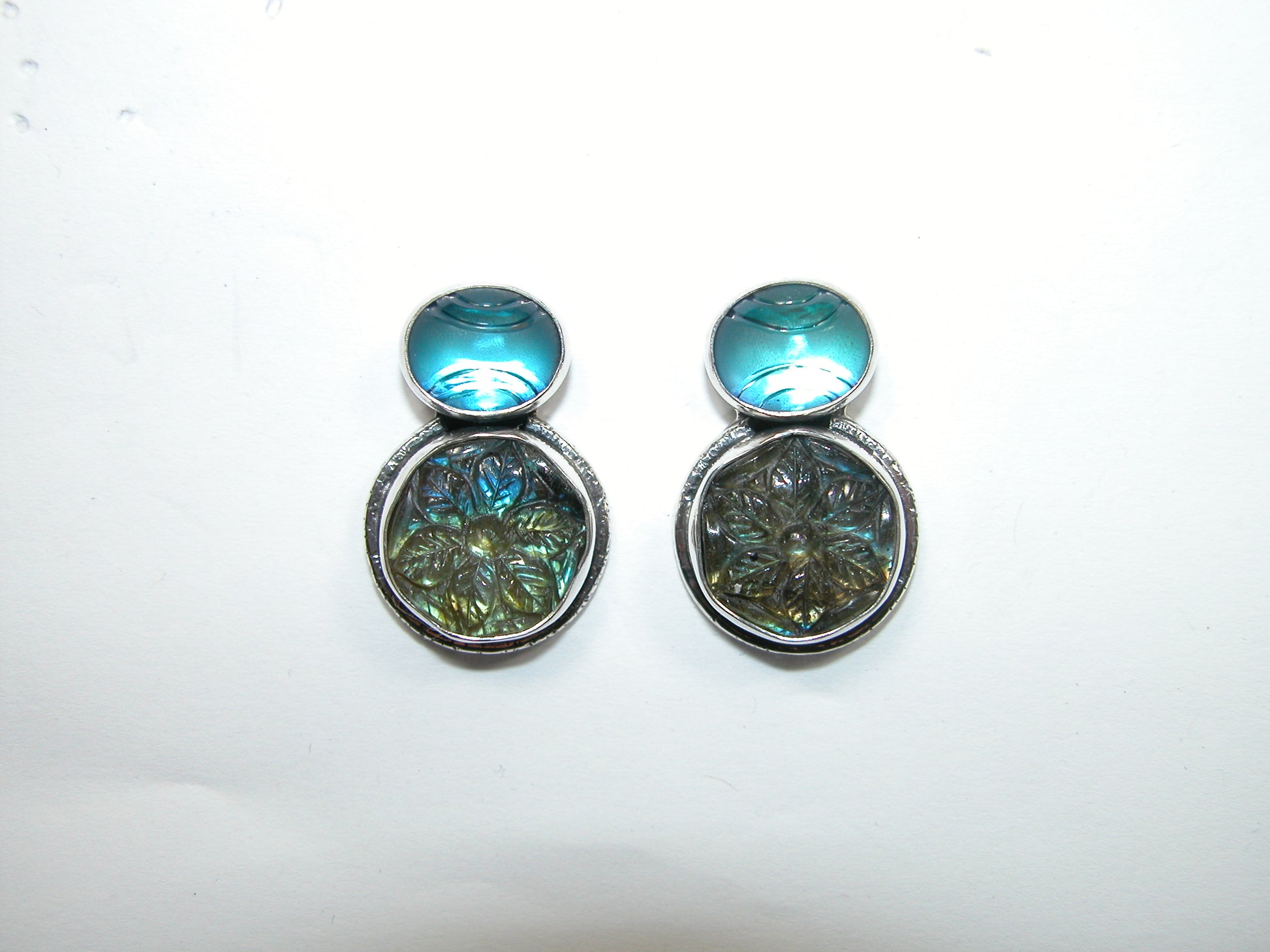 Hand Carved Labradorite, Celestial Quartz Sterling Silver Earrings