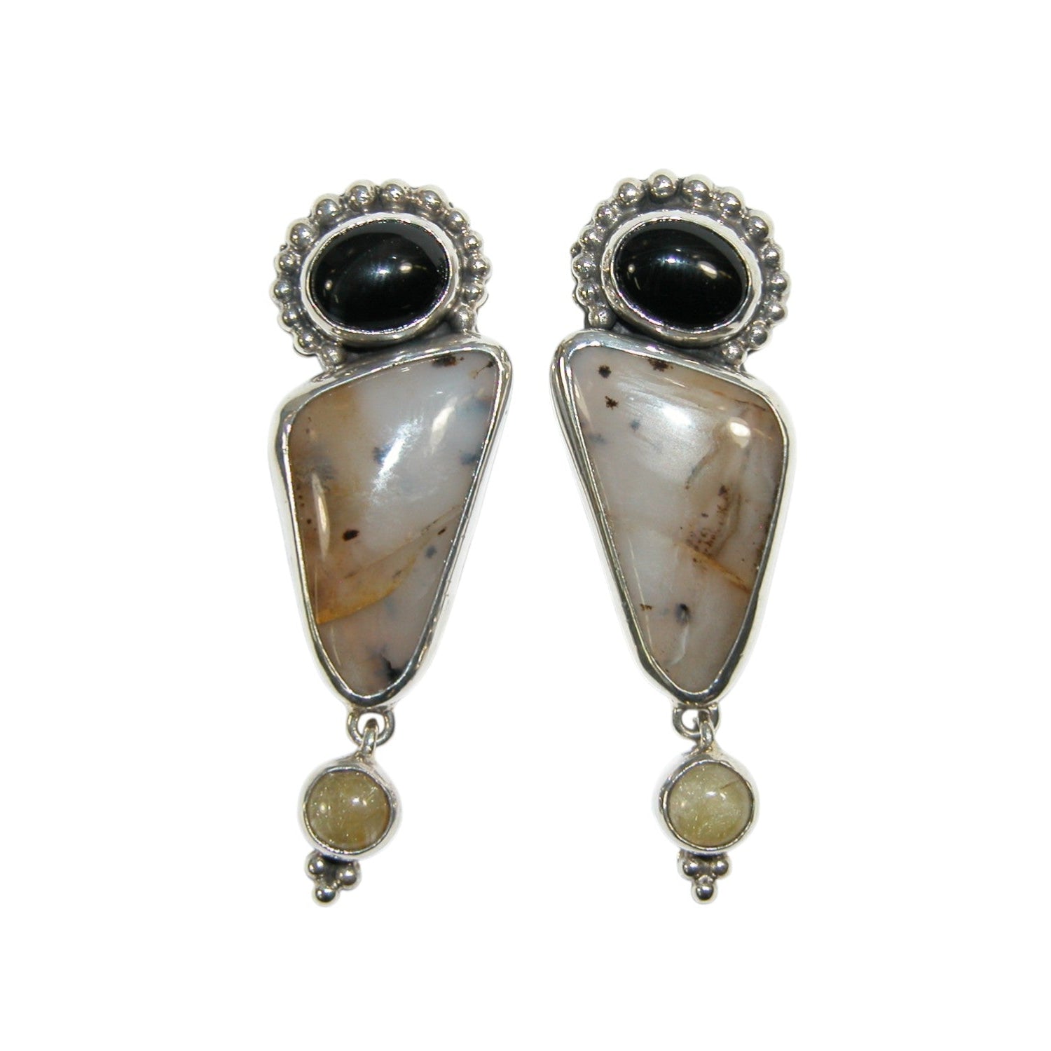34155 Agate, Onyx Sterling Silver Earrings