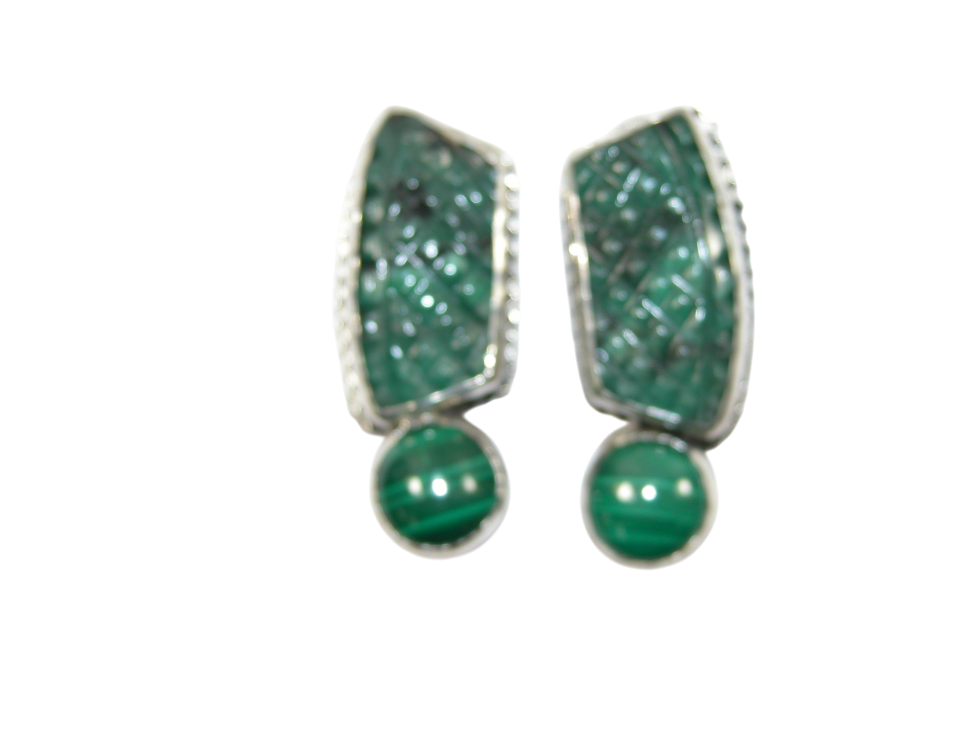34384 Carved Emerald Malachite Sterling Silver Earring