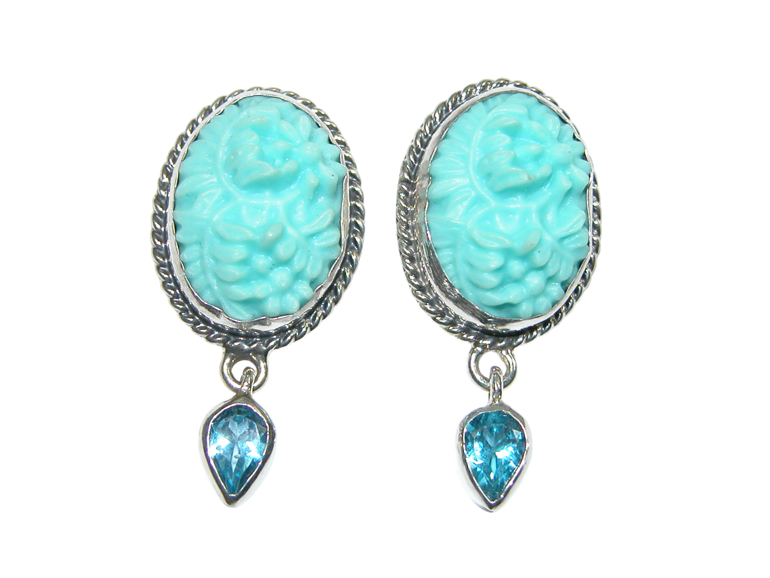 34386 Turquoise Vintage Glass Blue Topaz Sterling Silver Earring