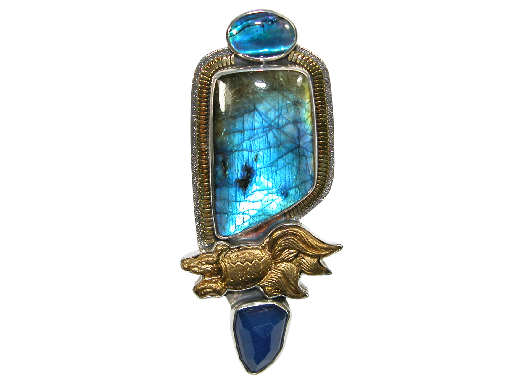 34403 Labradorite Lapis Abalone Sterling Silver Pin Pendant