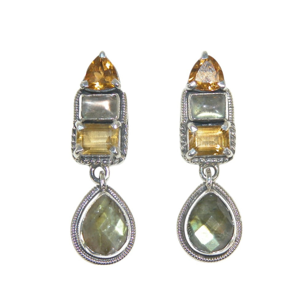 33243 4 Stone Citrine & Labradorite Dangle Sterling Silver Earring