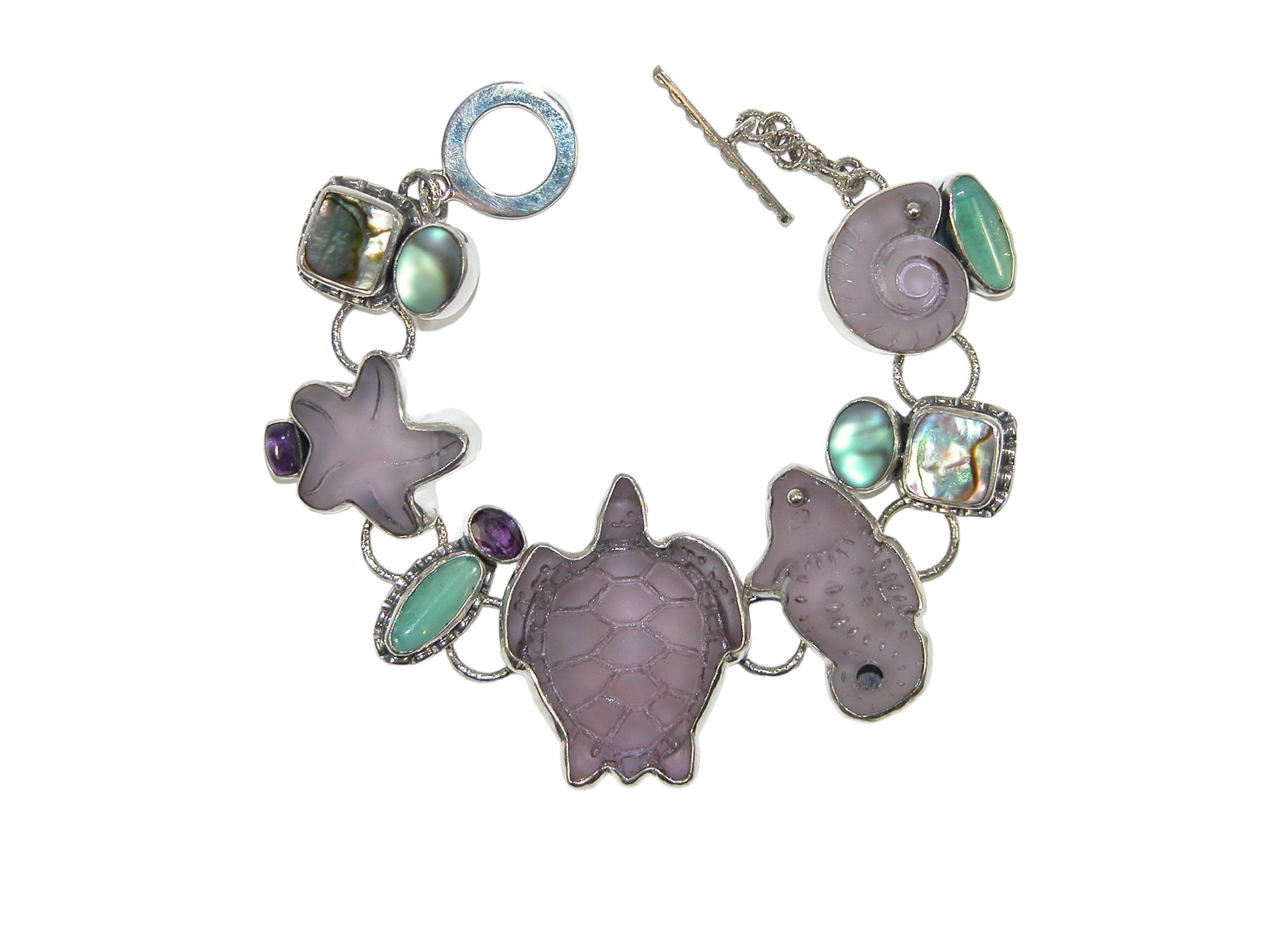 32499 Abalone Amethyst Sea Life Glass Sterling Silver Bracelet