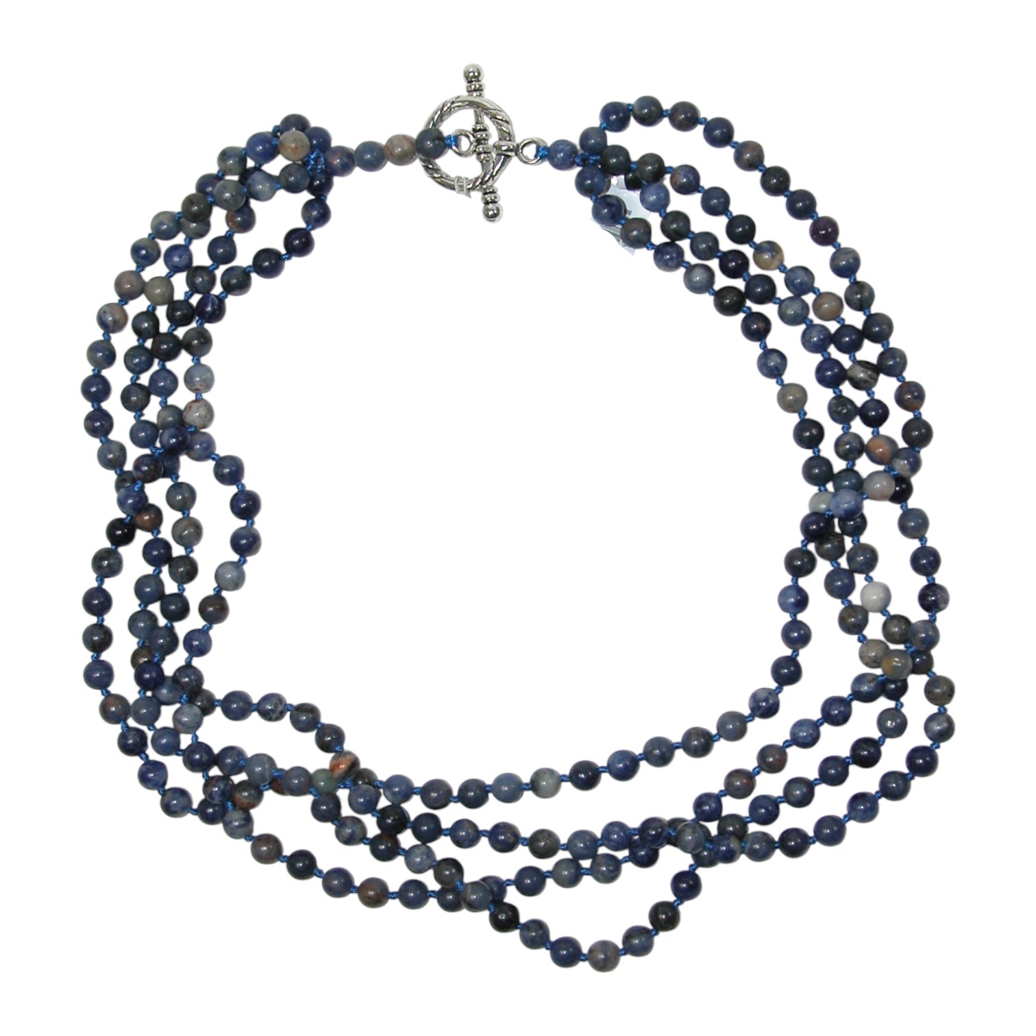 N5393 Sodalite Four Strand Sterling Silver Beaded Necklace