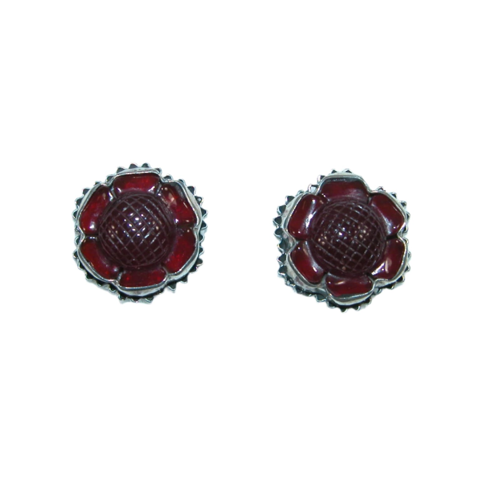 32163 Carnelian Carved Floral Sterling Silver Earrings