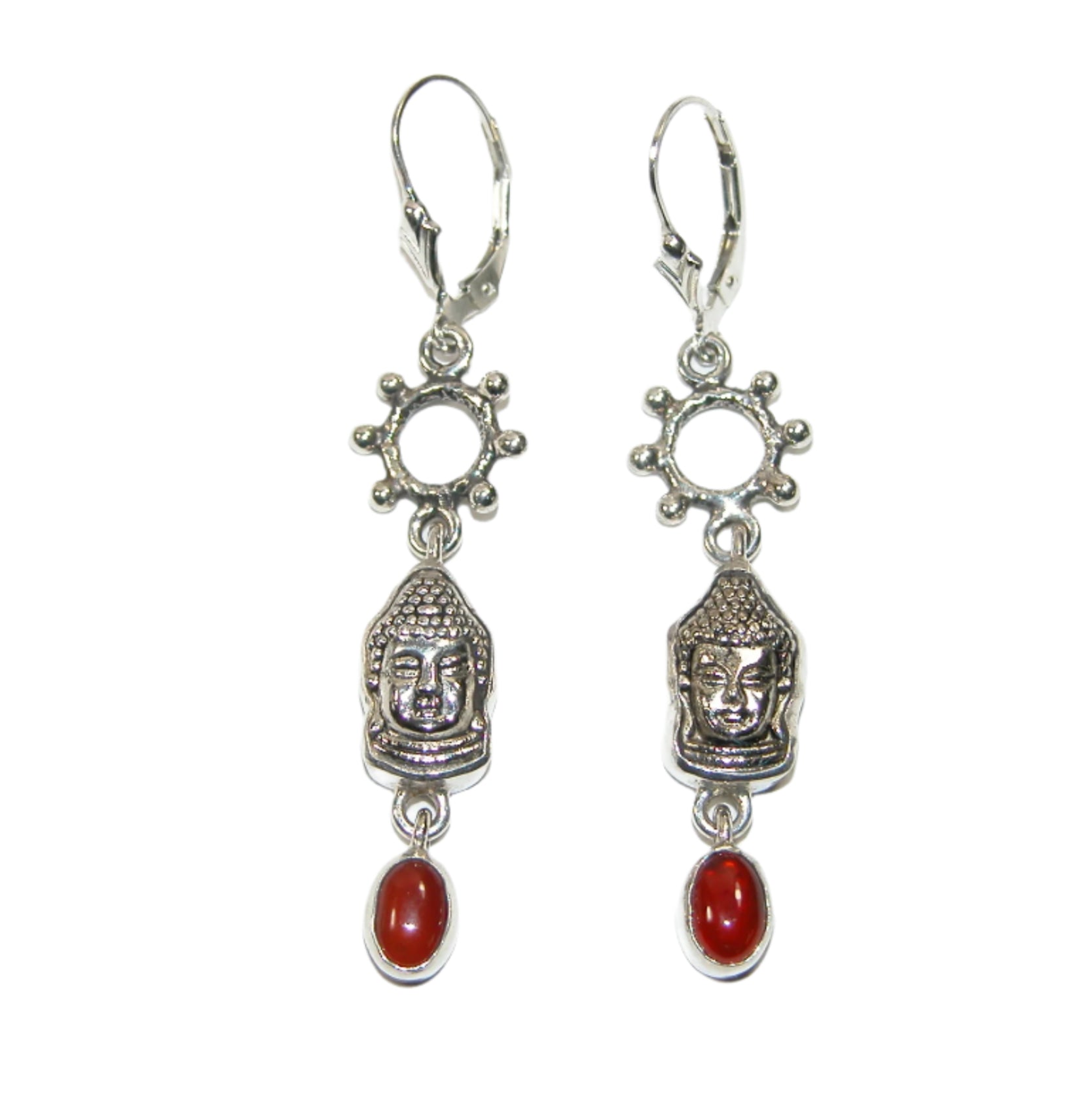 33083L Carnelian Buddha Dangle Sterling Silver Earring