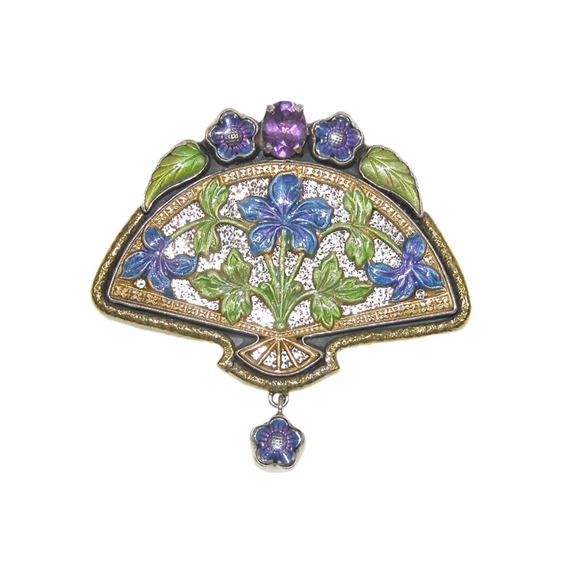 33064 Amethyst and Hand Enameled Fan Sterling Silver Pin Pendant