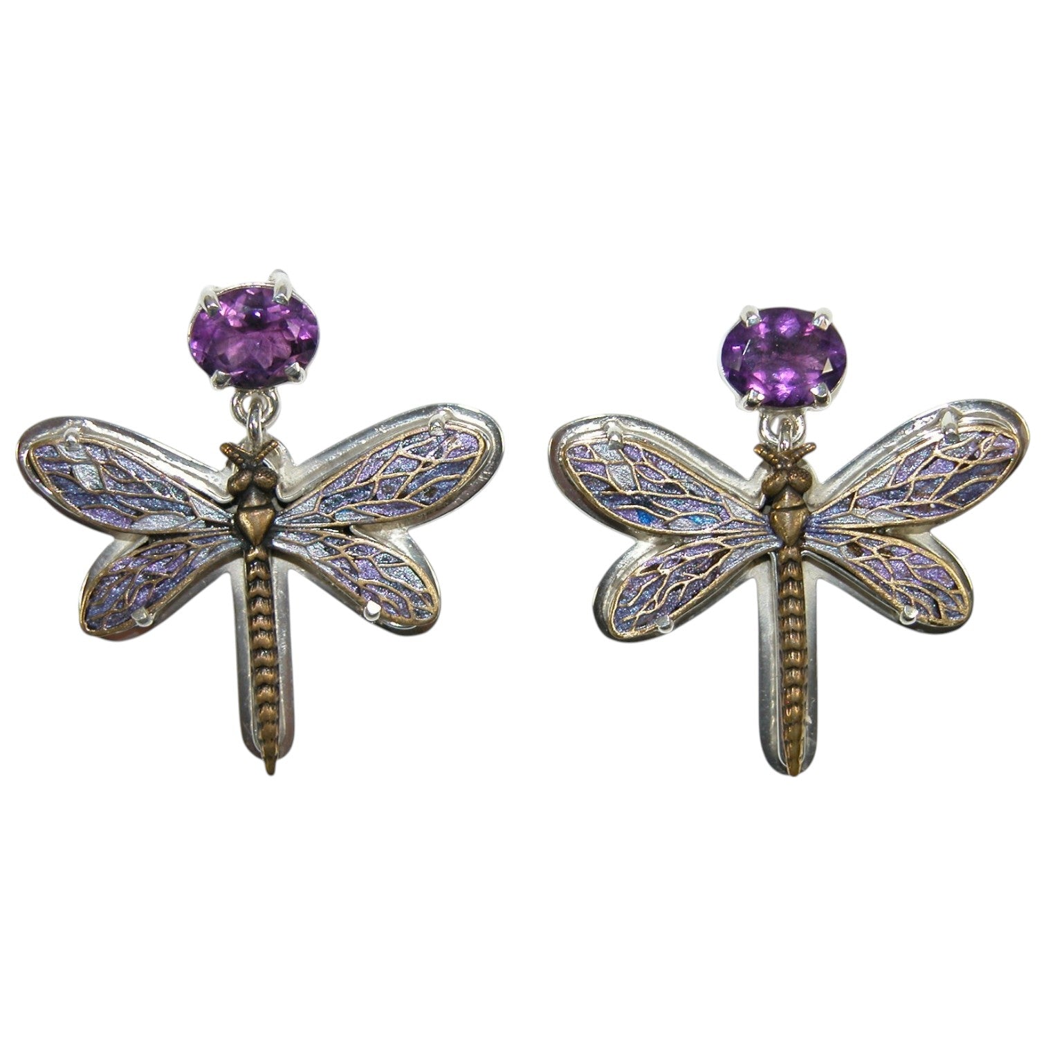32504 Amethyst Dragonfly Sterling Silver Earrings