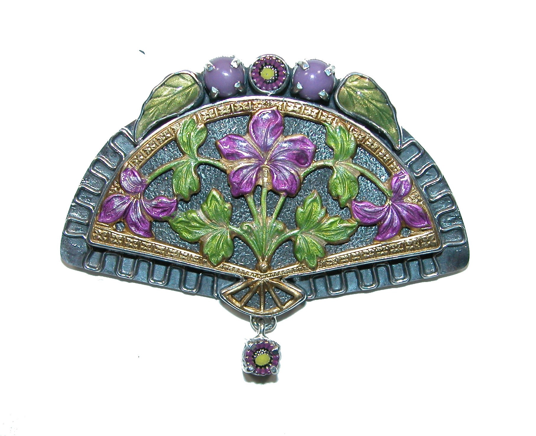 Floral Enameled Fan Sterling Silver Pin and Pendant