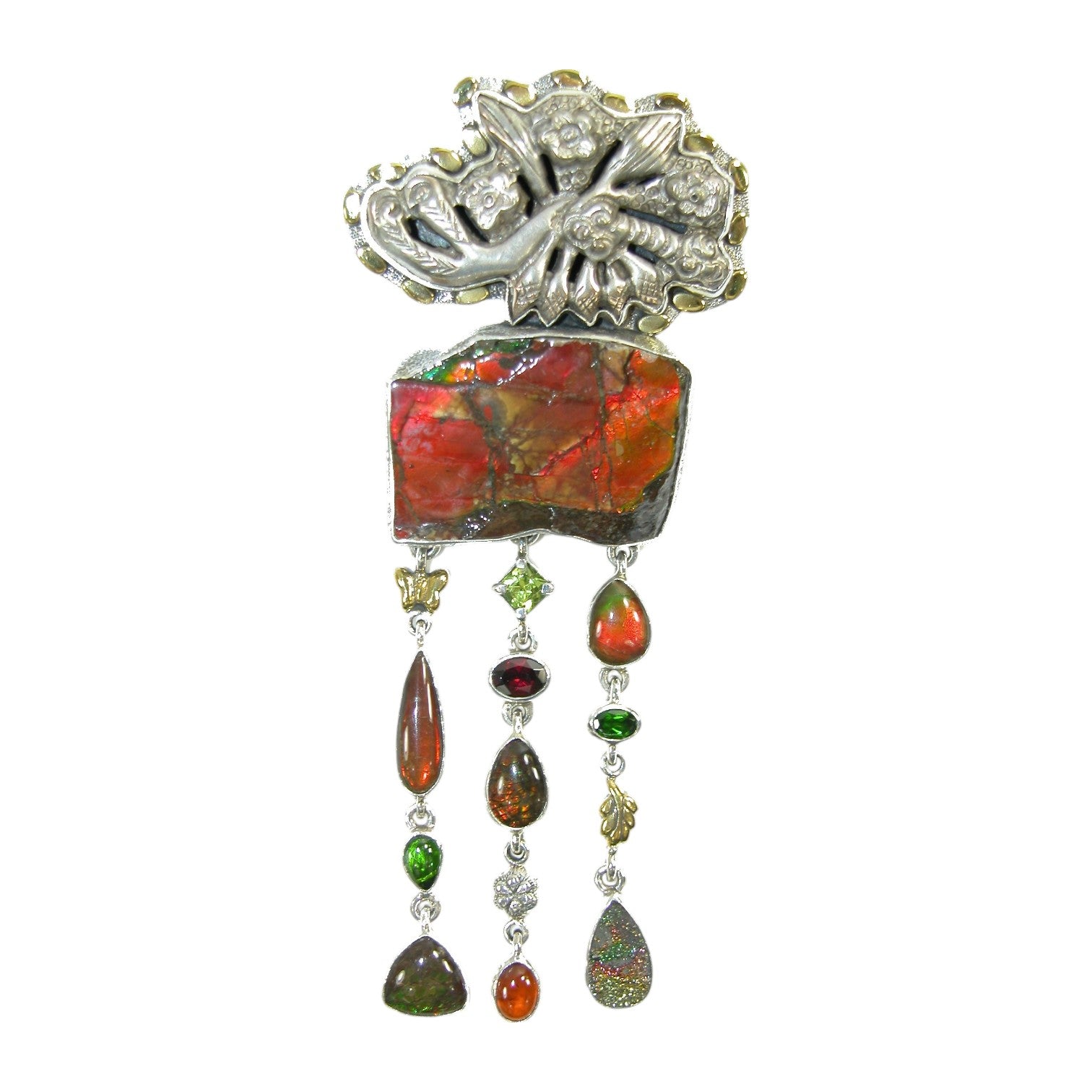 29014 Ammolite Garnet Drusy Sterling Silver Pin Pendant