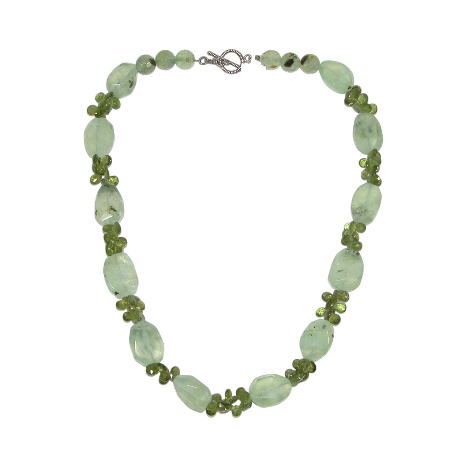 17182 Prehnite, Peridot Beaded Sterling Silver Necklace