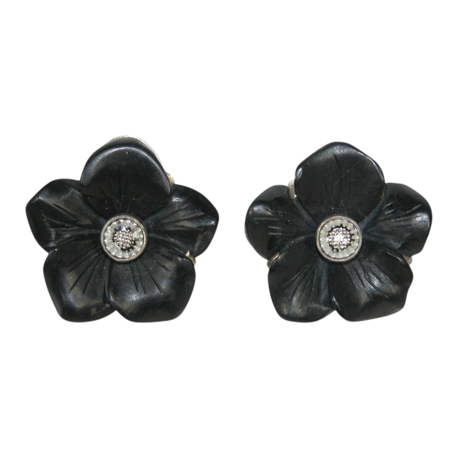 31680 Black Flower Sterling Silver Earrings