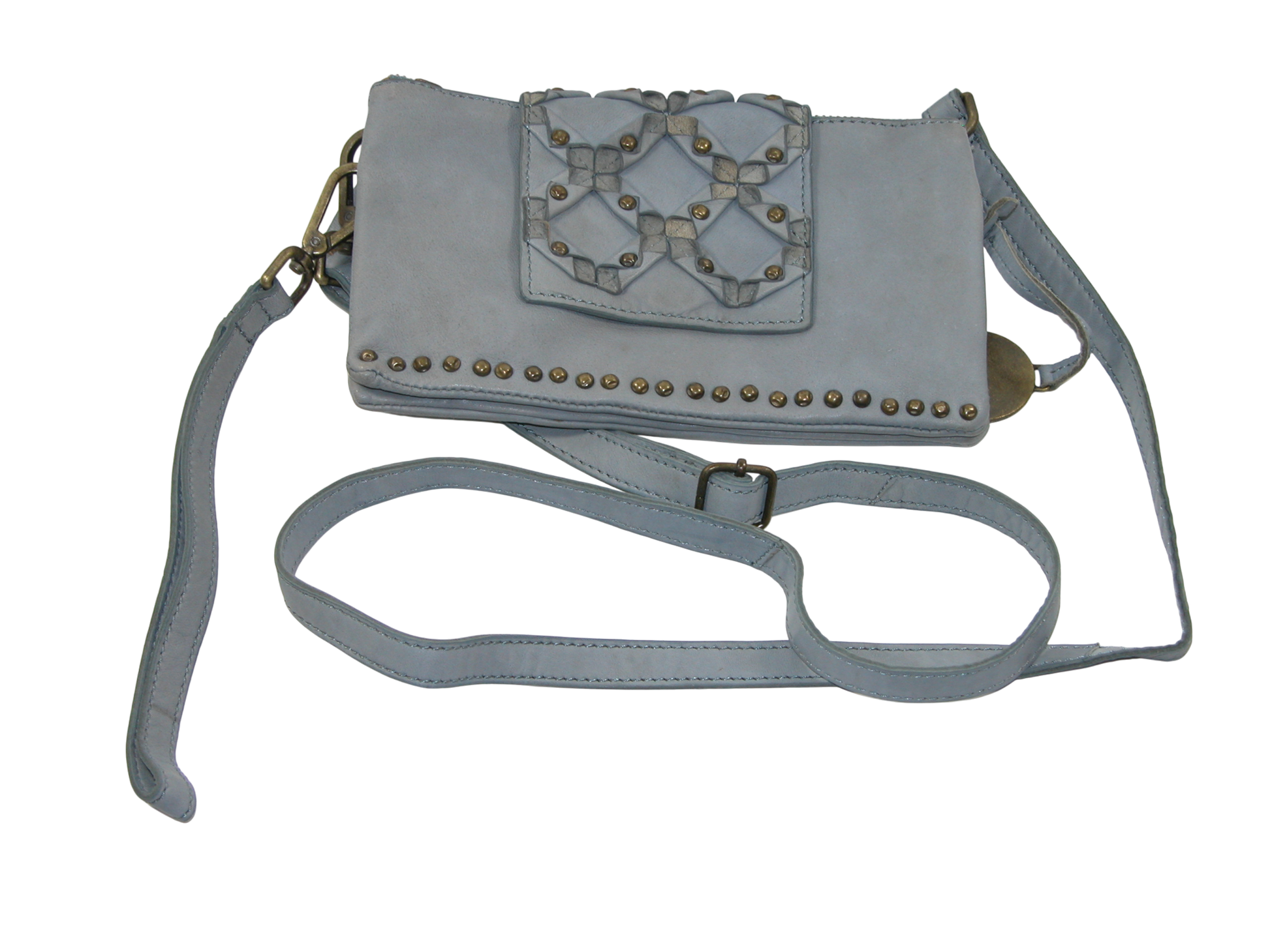 Blue Denim Studded Leather Handbag Purse GF3452