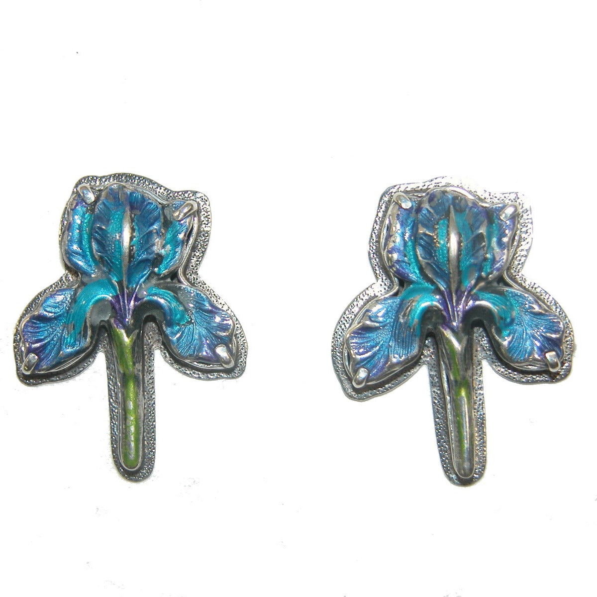 31173 Blue Enamel Iris Flower Sterling Silver Earrings