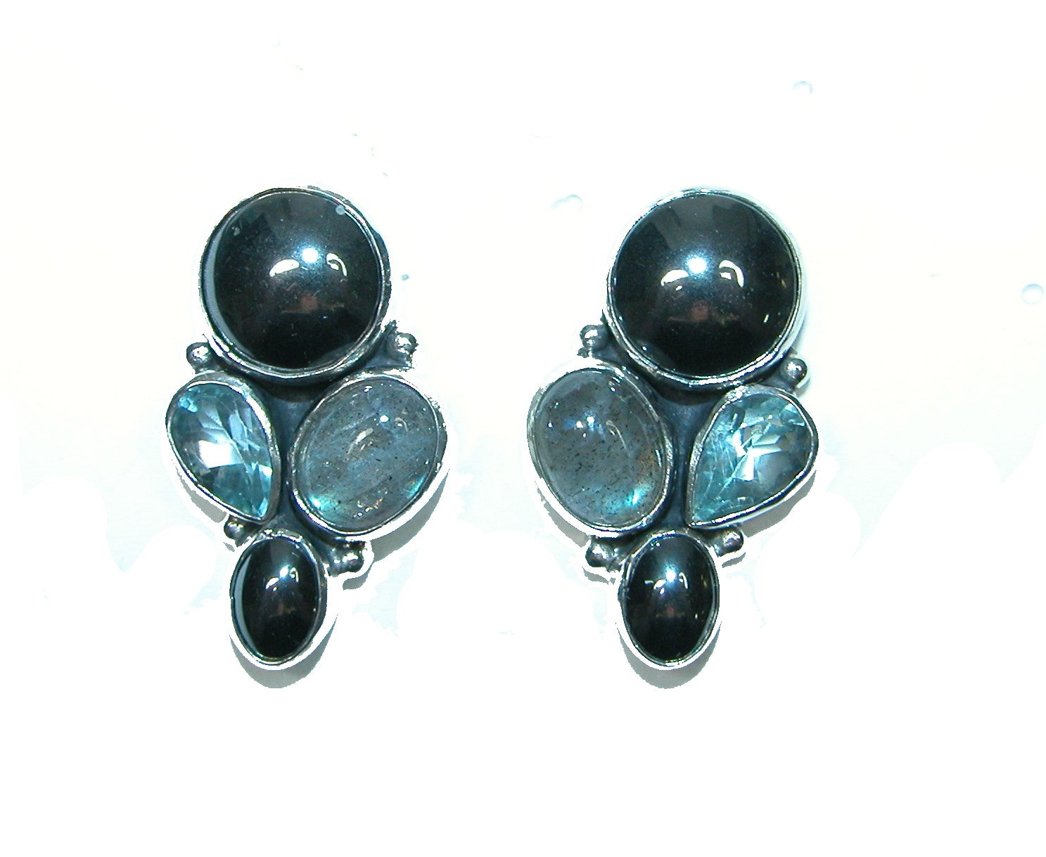 Our blue Topaz and Magnetite cluster sterling silver earrings are perfect for daily wear or a special occasion!