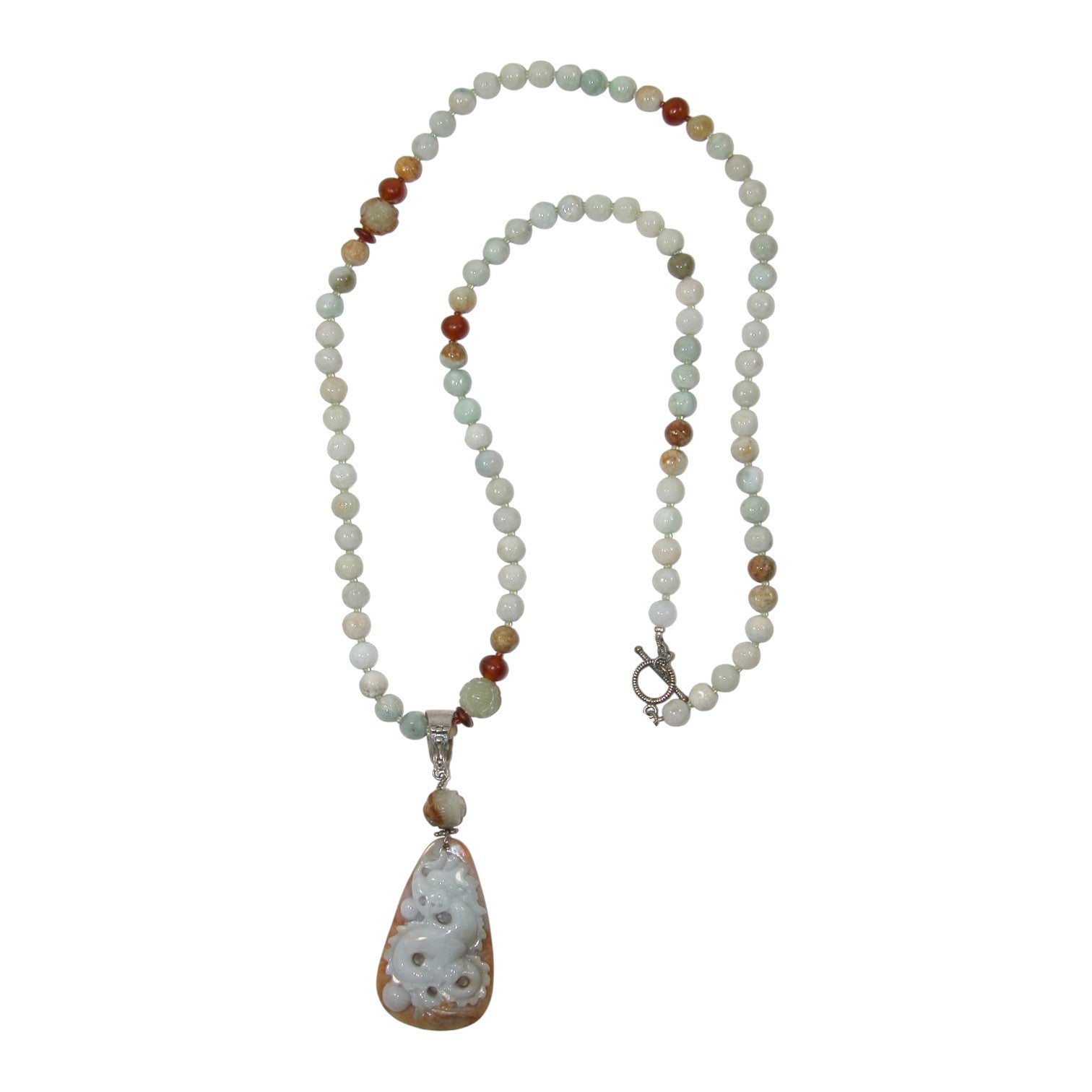 18050 Carved Dragon Beaded Sterling Silver Necklace