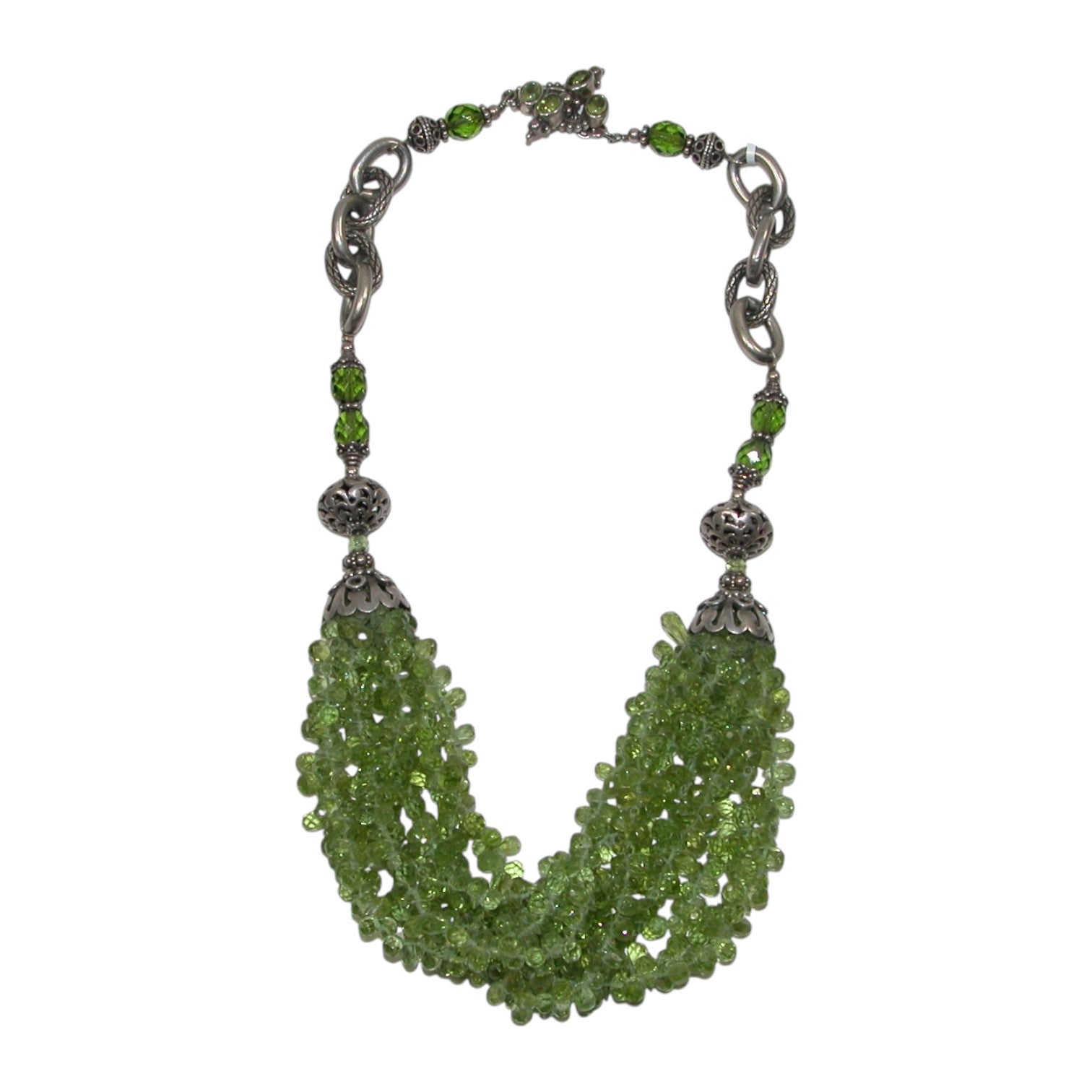 29089 Peridot 8 Strand Beaded Sterling Silver Necklace