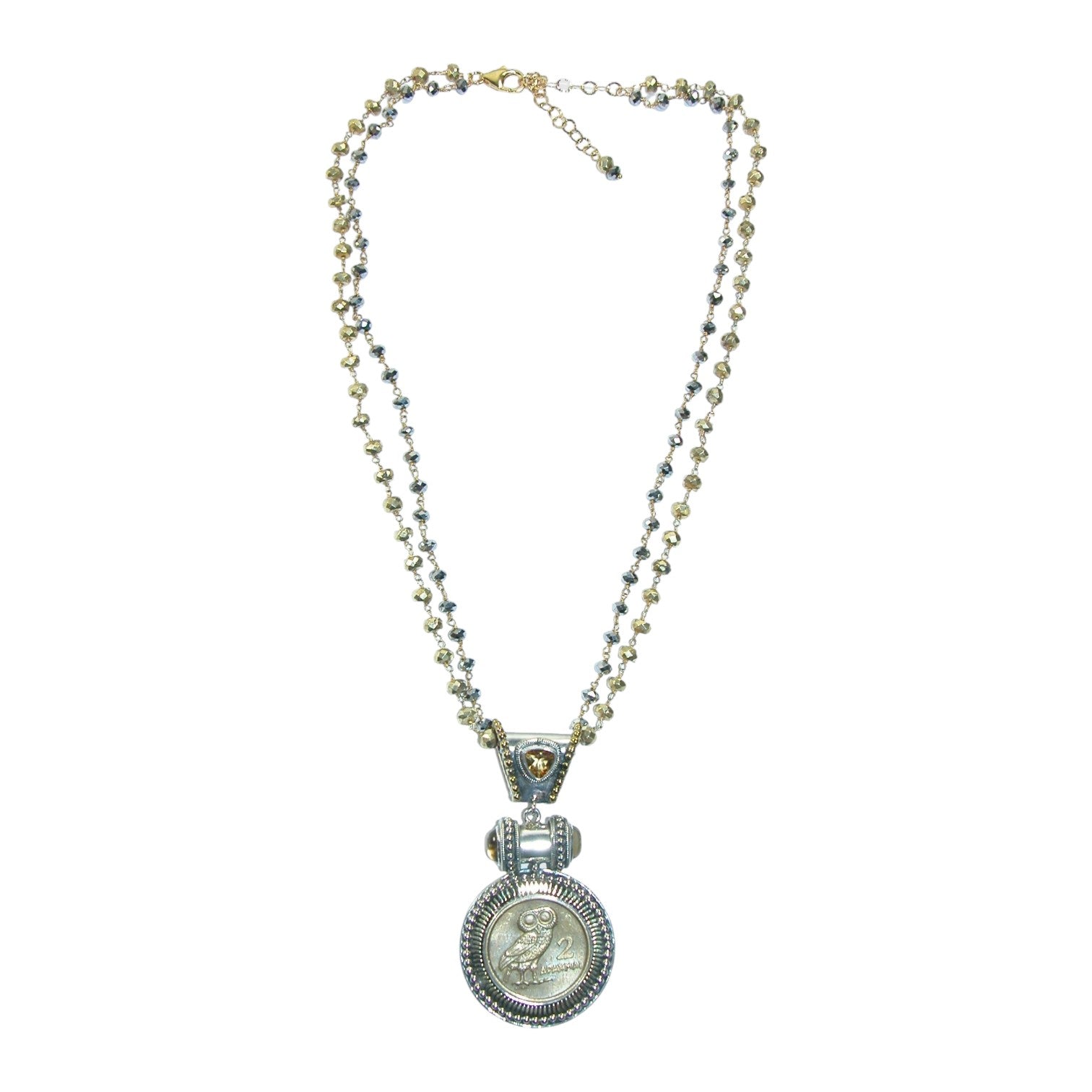 31718 Owl Coin Hematite Sterling Silver Necklace