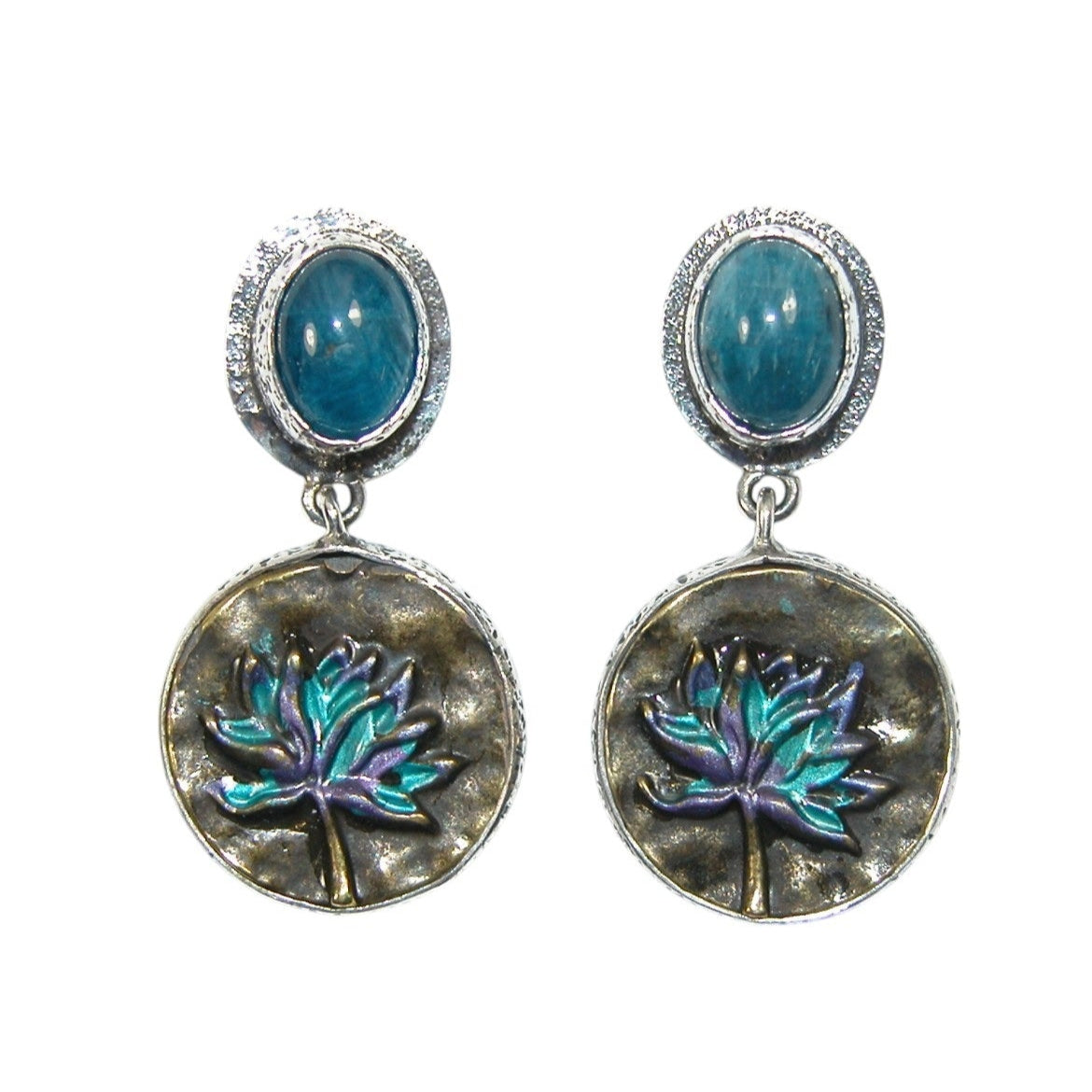 33469 Apatite, Mabe Pearl Enameled Lotus Sterling Silver Dangle Earrings