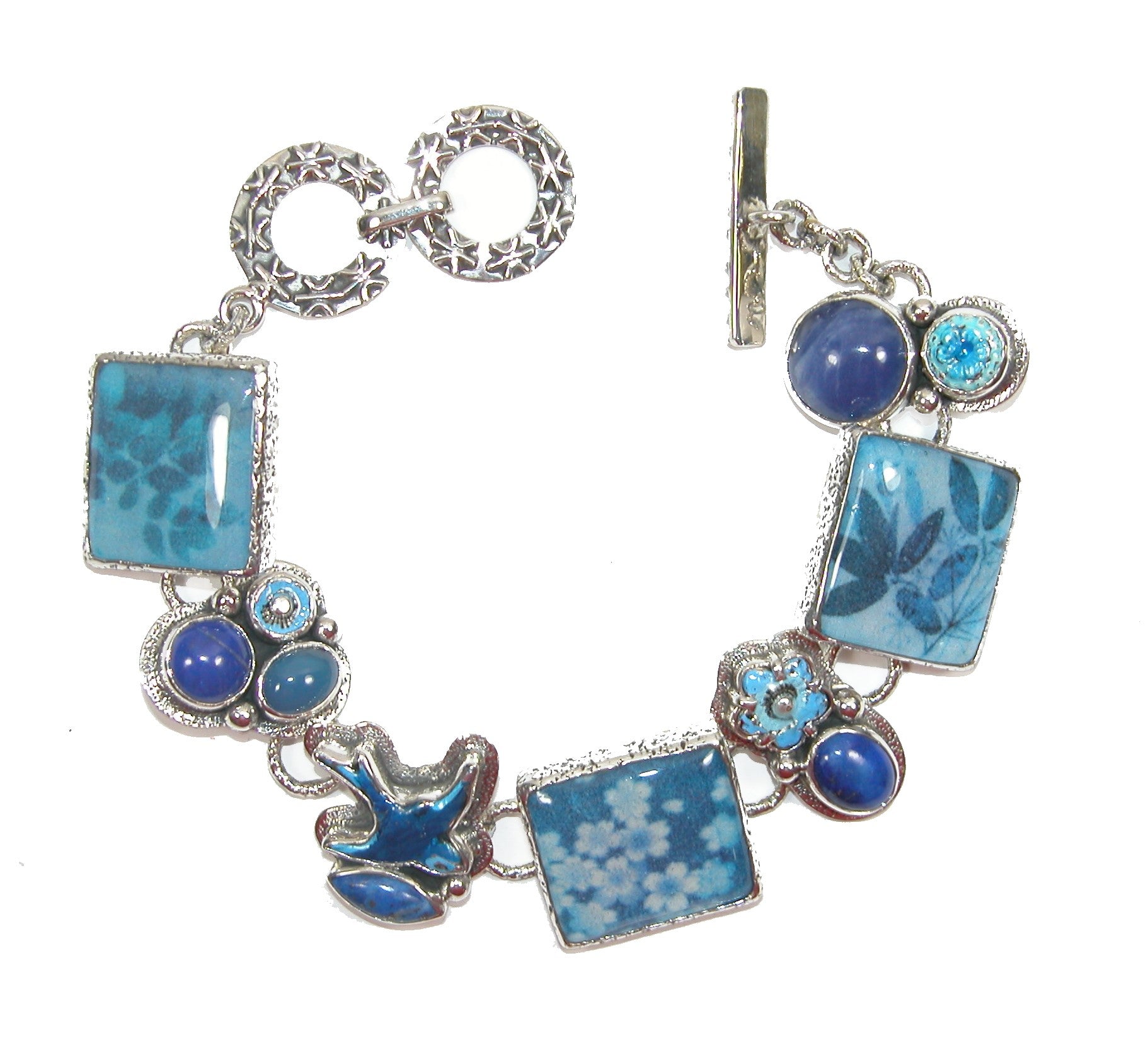 31799 Blue Lapis, Bird Enamel Tile Sterling Silver Bracelet