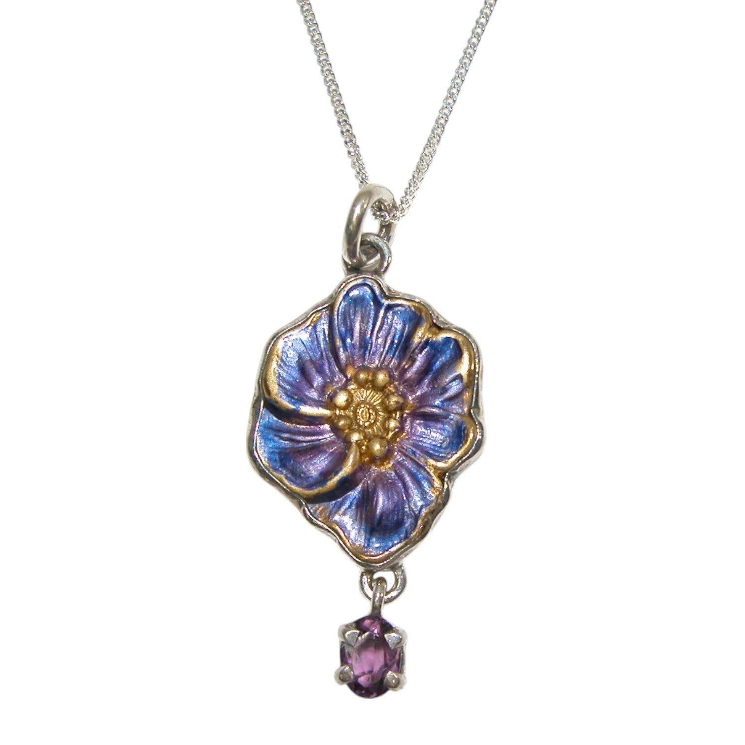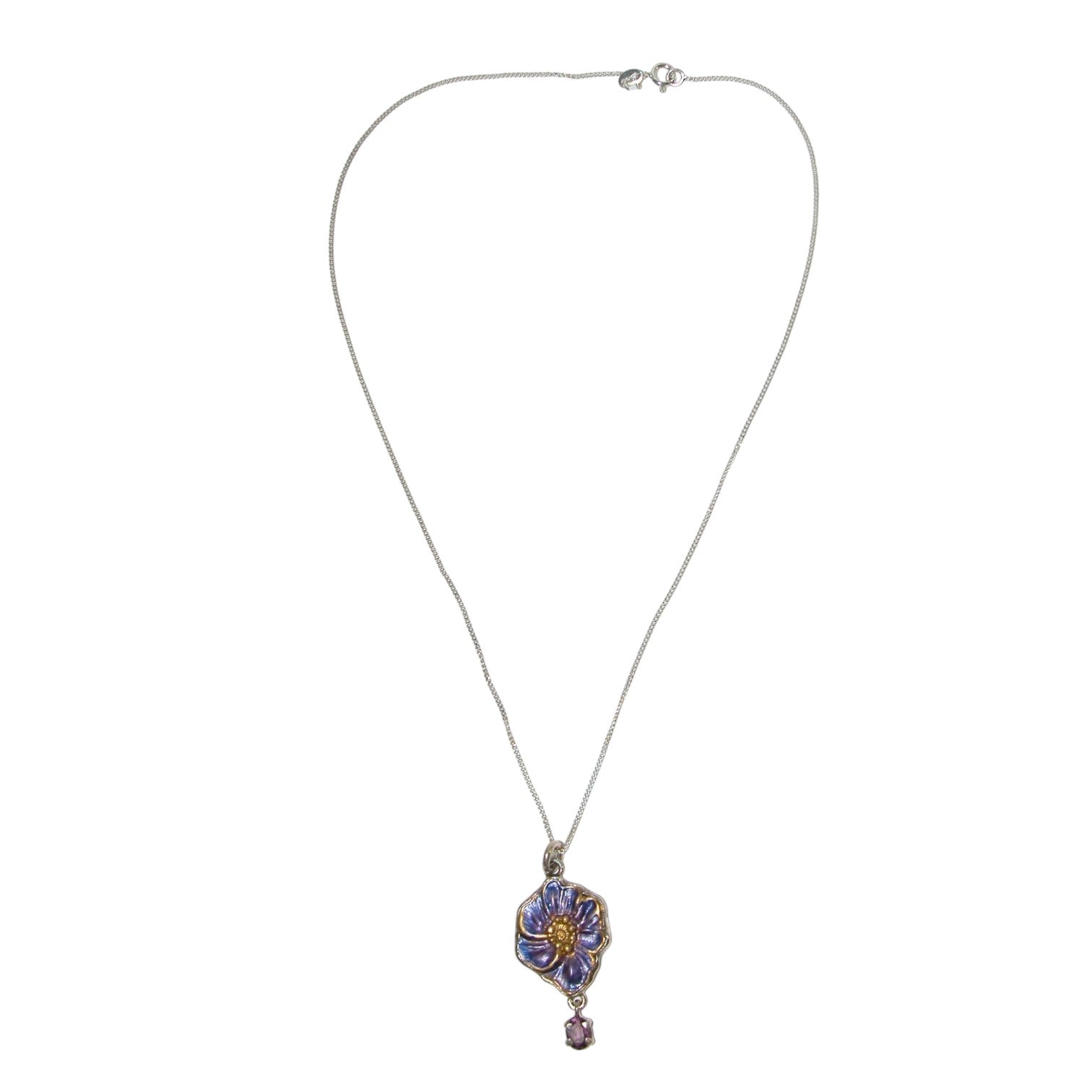 32177A Hand Enameled Flower Amethyst Sterling Silver Necklace