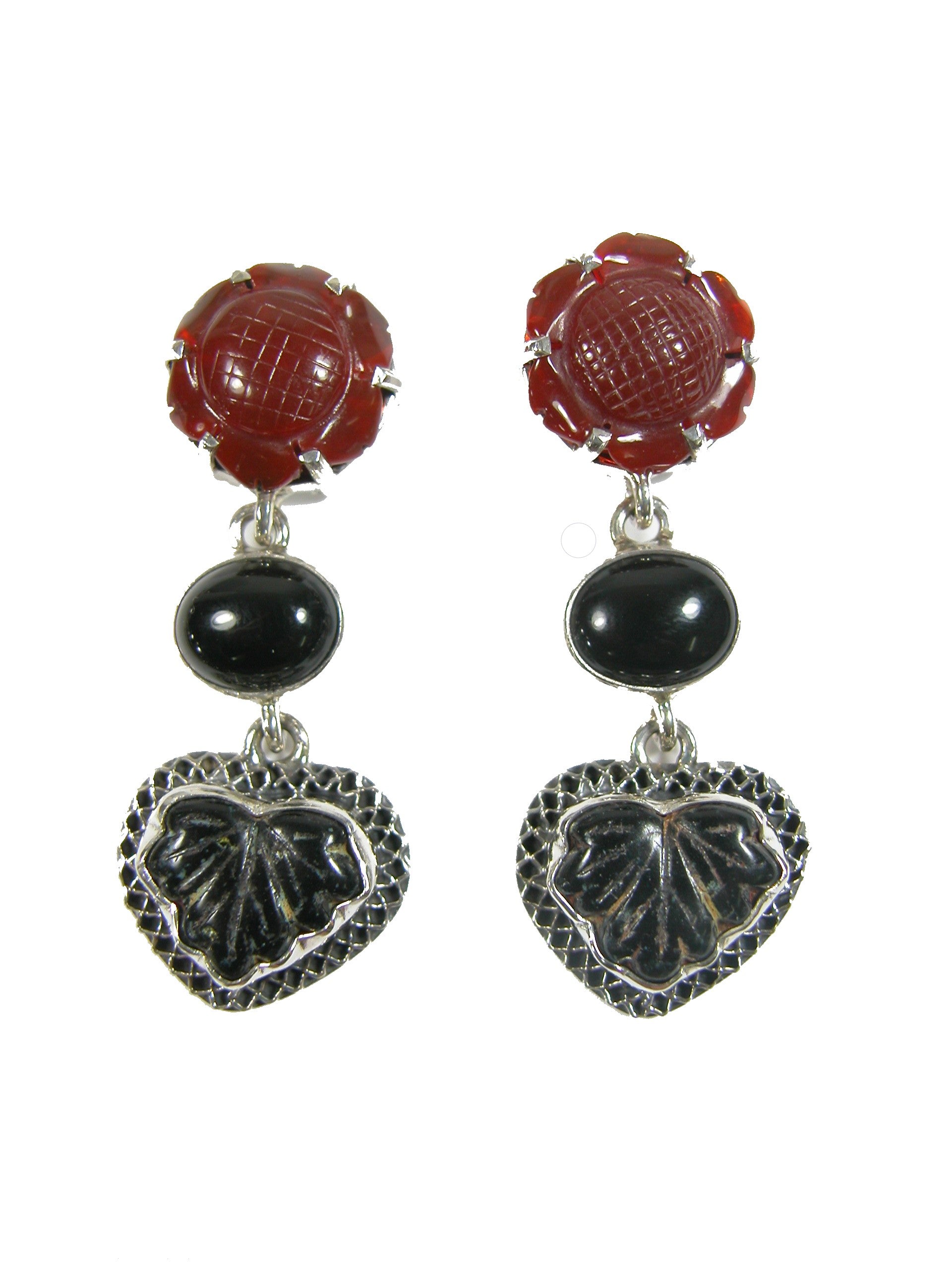 19658A Carnelian Black Onyx Leaf Sterling Silver Drop Earrings
