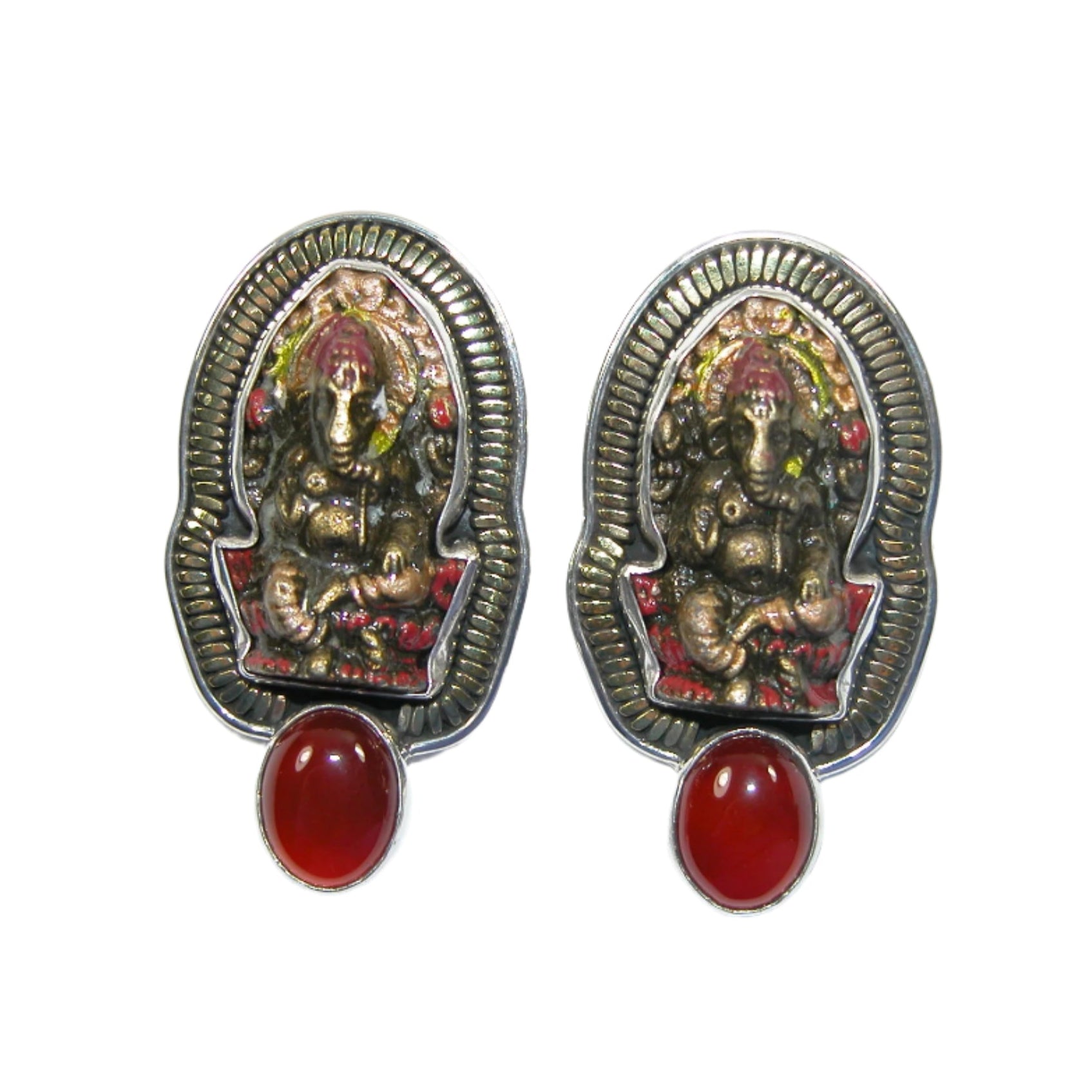 33370 Carnelian Ganesha Sterling Silver Earrings