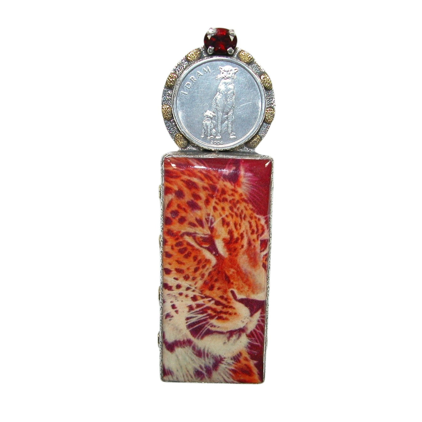 33045A Hand Made Tile Cheetah Coin Sterling Silver Pin and Pendant